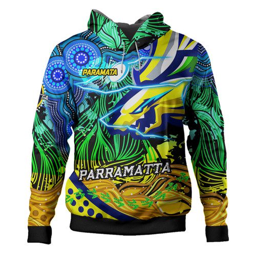 Parramatta Eels Hoodie – Custom Electric Parramatta Eels with Aboriginal Inspired Dot Painting Player And Number Hoodie