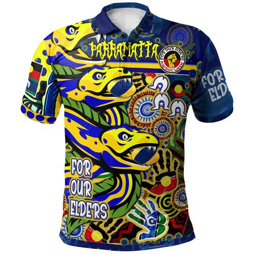 Parramatta Eels Naidoc Polo Shirt – Custom Parramatta Eels Naidoc Week For Our Elders Aboriginal Inspired Polo Shirt