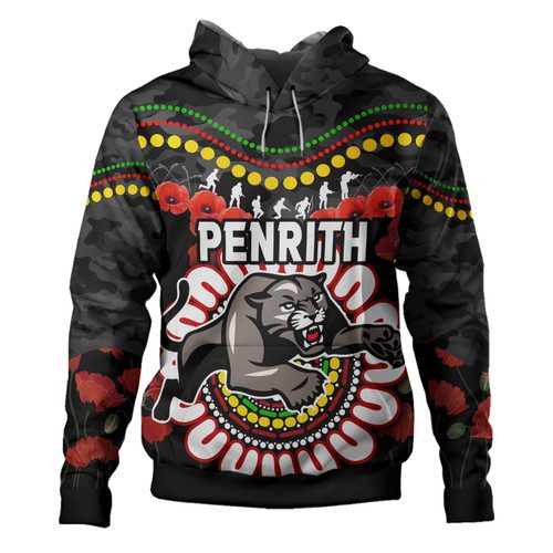 Penrith Panthers Anzac Custom Hoodie – Poppies Penrith Panthers and Aboriginal Inspired Hoodie