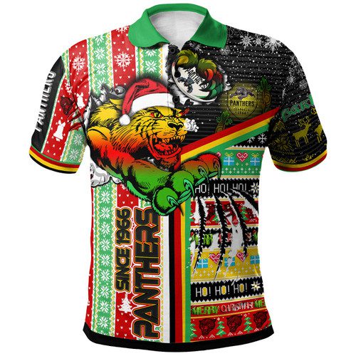 Penrith Panthers Christmas Polo Shirt – Custom Merry Super Penrith Panthers Christmas With Snowflakes Ho Ho Ho Scratch Polo Shirt