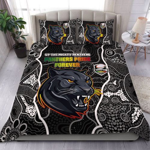 Penrith Panthers Grand Final Custom Bedding Set – Custom Penrith Panthers With Contemporary Style Of Aboriginal Painting Bedding Set