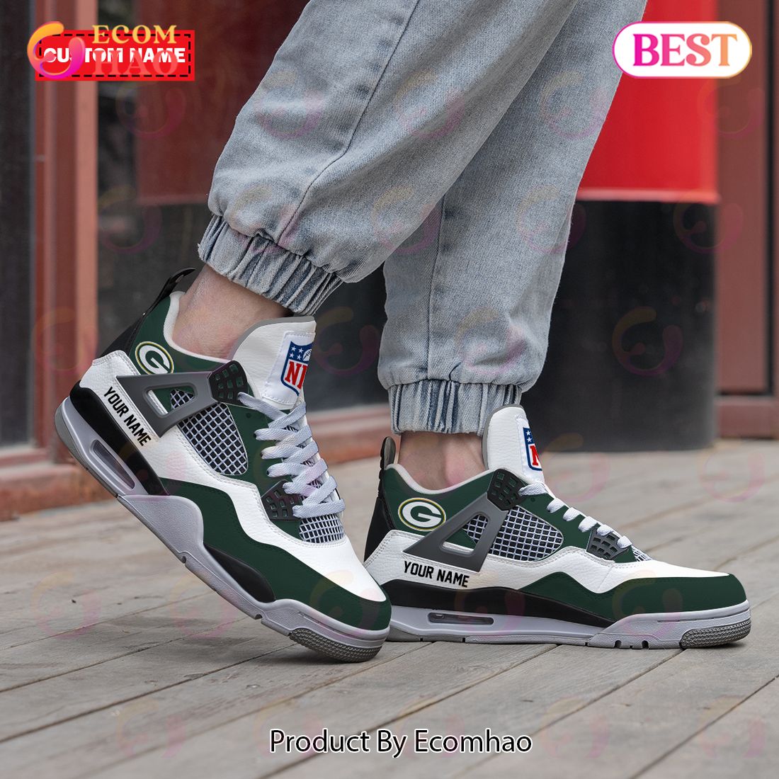 Personalization NFL Green Bay Packers Air Jordan 4 The Personalization NFL Green Bay Packers Air Jordan 4 is the perfect addition to your NFL wardrobe. This sneaker has been designed with the iconic Air Jordan 4 silhouette, featuring flex grooves for superior comfort and movement. It also features a unique Green Bay Packers colour scheme...
