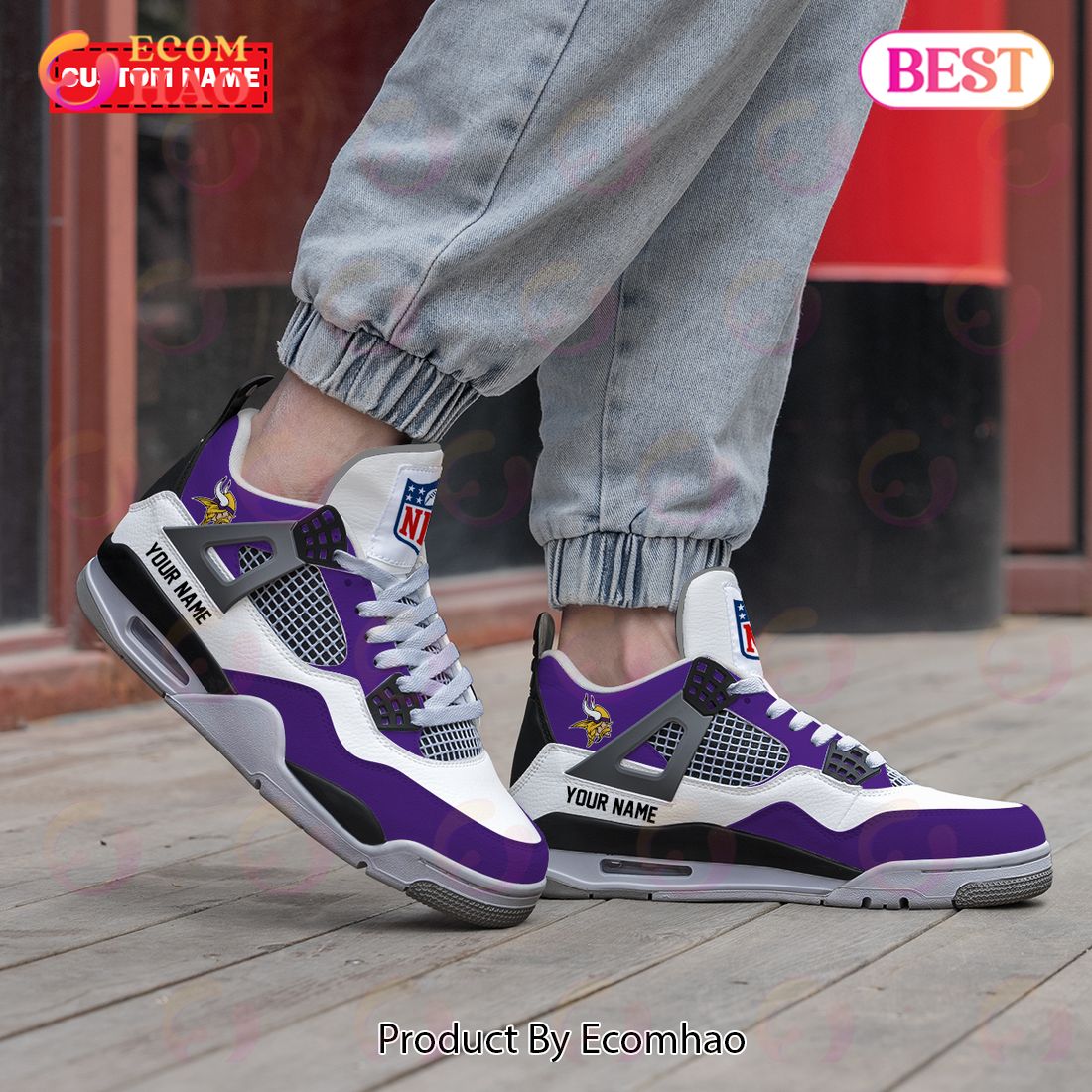 Personalization NFL Minnesota Vikings Air Jordan 4 Information:.