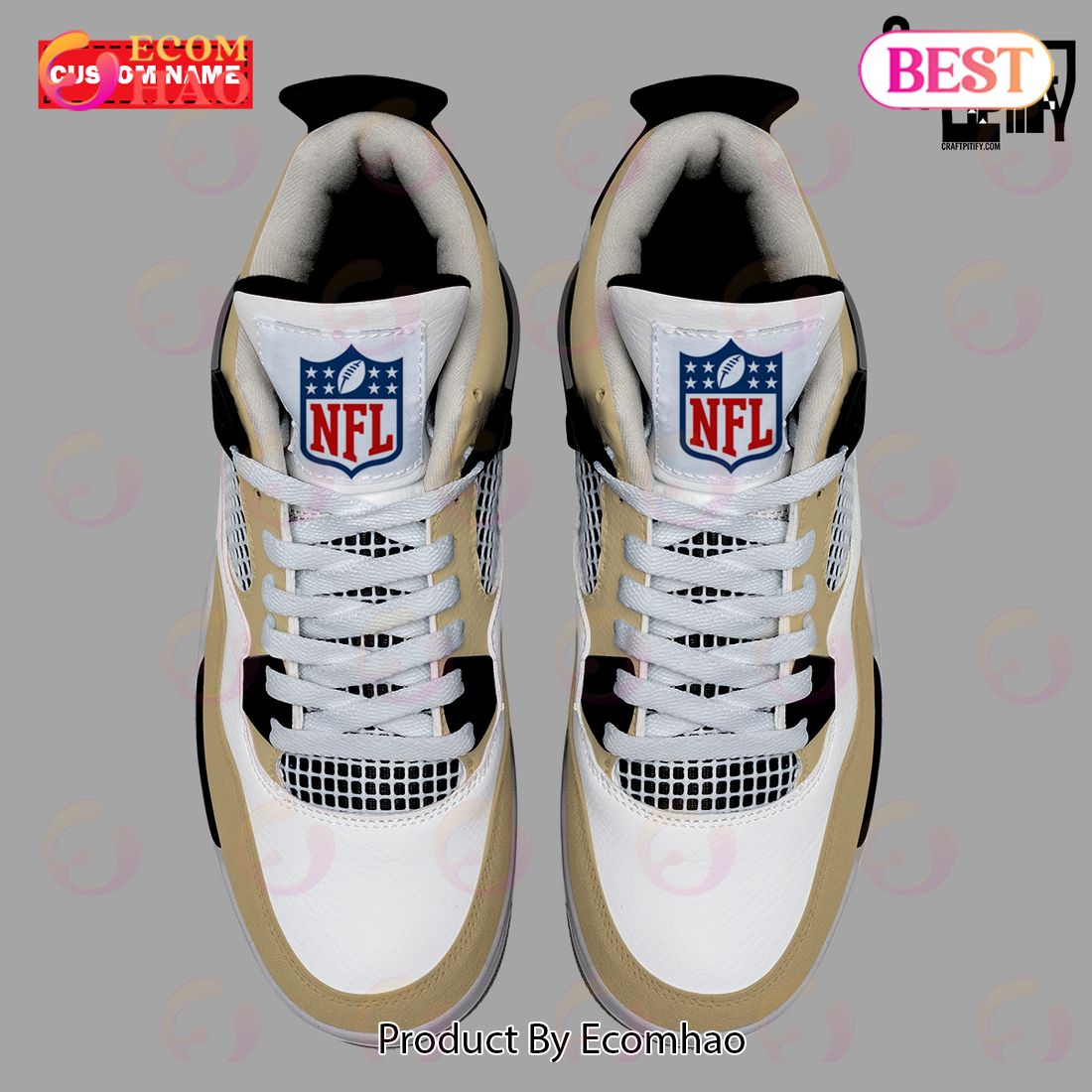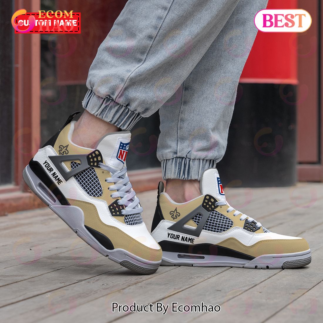 Personalization NFL New Orleans Saints Air Jordan 4 The Personalization NFL New Orleans Saints Air Jordan 4 is the perfect way to show off your team loyalty and personal style. This shoe features a leather and synthetic upper that is designed with a round toe and an Air Sole unit for comfortable cushioning that absorbs...