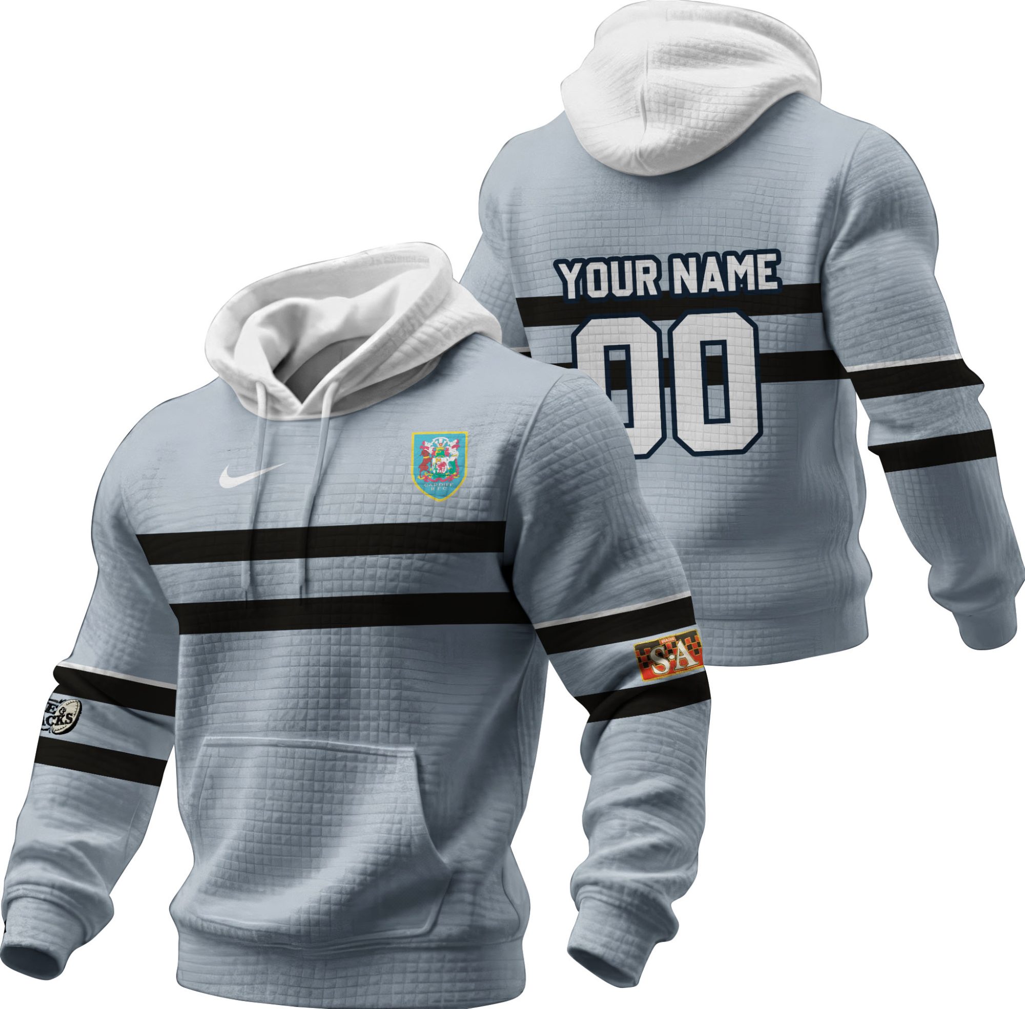 Personalized Cardiff RFC Rugby Union 1990 Vintage Home Jersey Unisex Waffle Hoodie