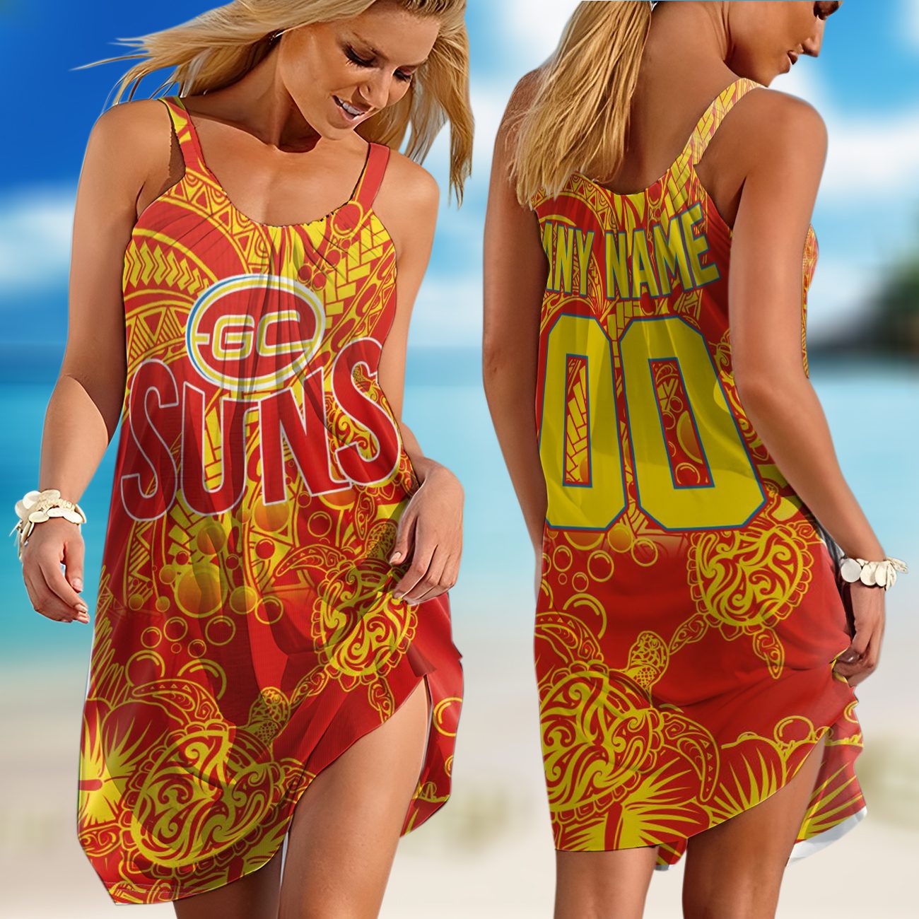 Personalized Gold Coast Suns AFL Special Polynesian Sleeveless Summer Beach Sundress for Women