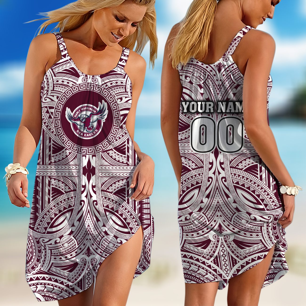 Personalized Manly Warringah Sea Eagles NRL Polynesian Sleeveless Summer Beach Sundress for Women