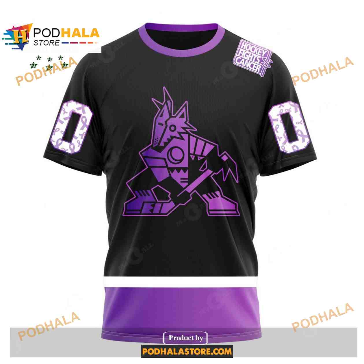Personalized NHL Arizona Coyotes Special Black Hockey Fights Cancer Shirt Hoodie 3D