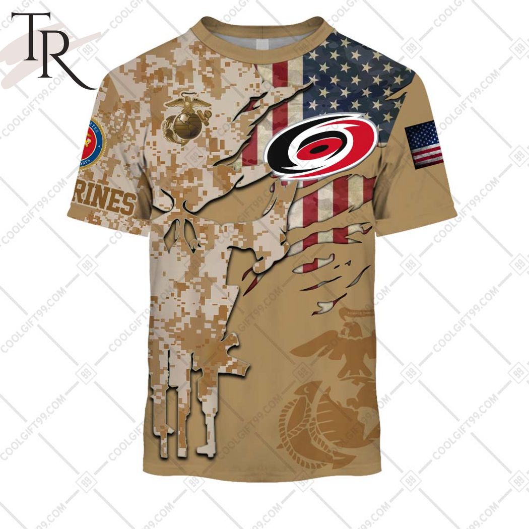 Personalized NHL Carolina Hurricanes Marine Corps Camo Hoodie, Zipper Hoodie, Fleece Hoodie, Long Sleeve Shirt, T-Shirt