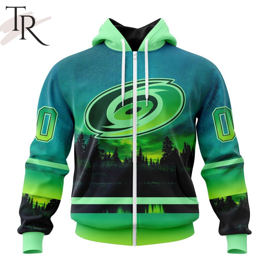 Personalized NHL Carolina Hurricanes Special Design With Northern Light Full Printed Hoodie, Zipper Hoodie, Fleece Hoodie, Long Sleeve Shirt, T-Shirt