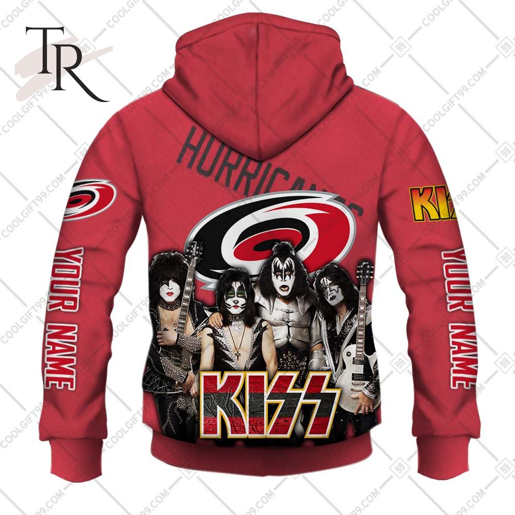 Personalized NHL Carolina Hurricanes x Kiss Band V2 Style Hoodie 3D, Zipper Hoodie, Fleece Hoodie, Long Sleeve Shirt, T-Shirt