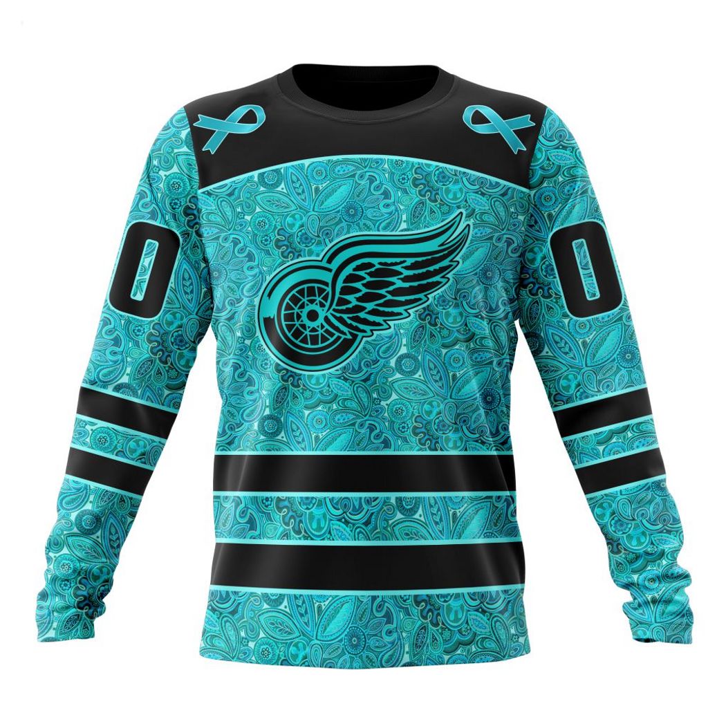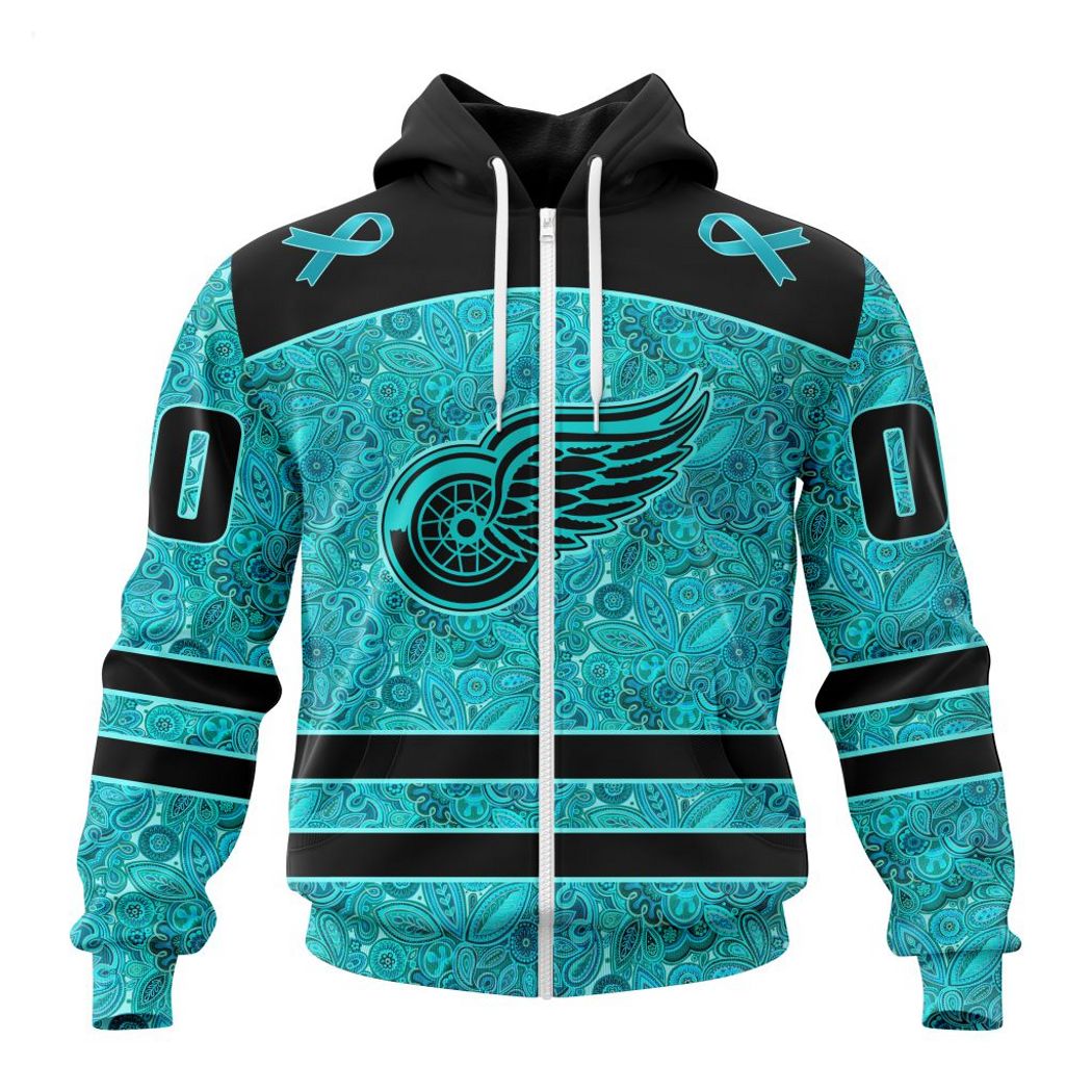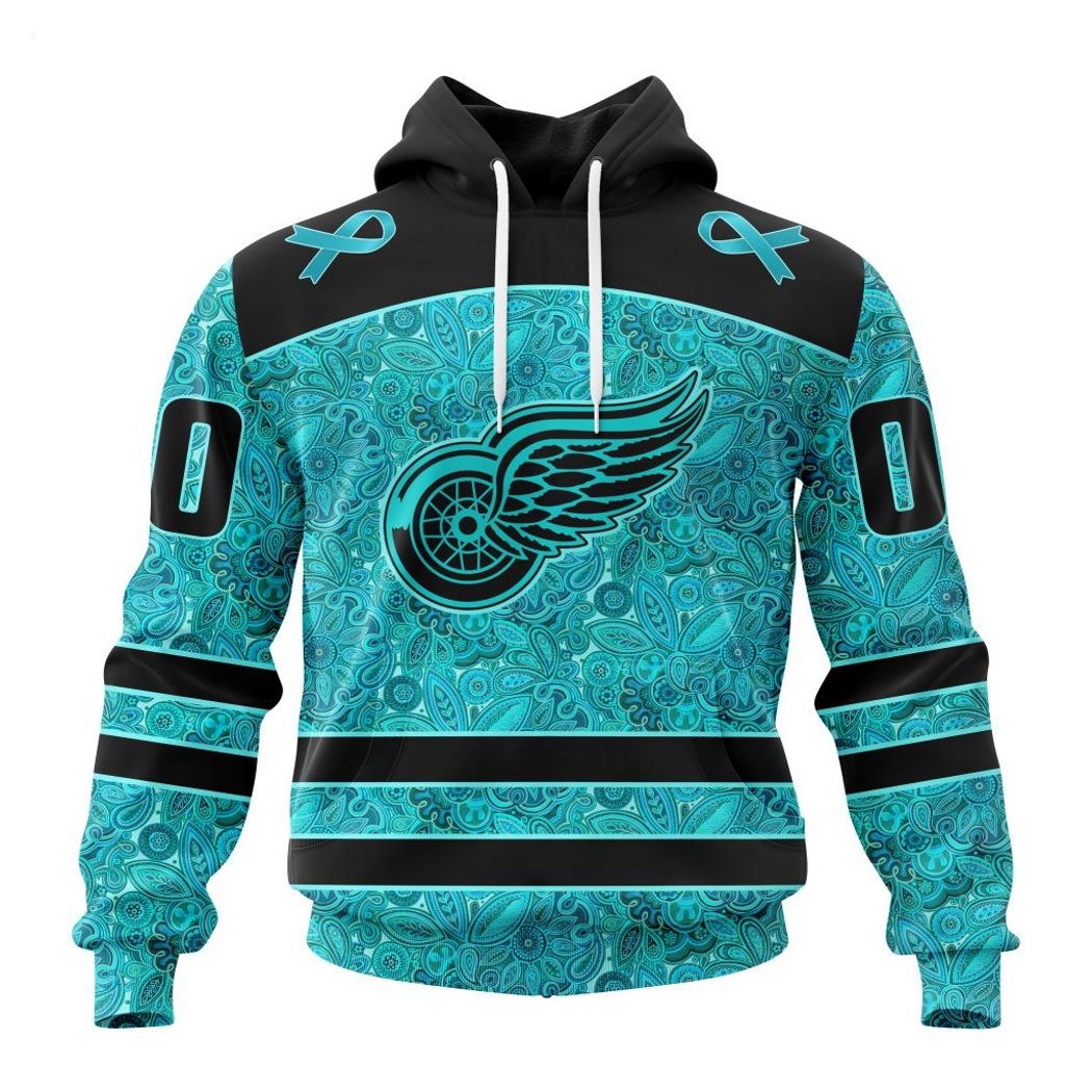 Personalized NHL Detroit Red Wings Special Design Fight Ovarian Cancer Hoodie