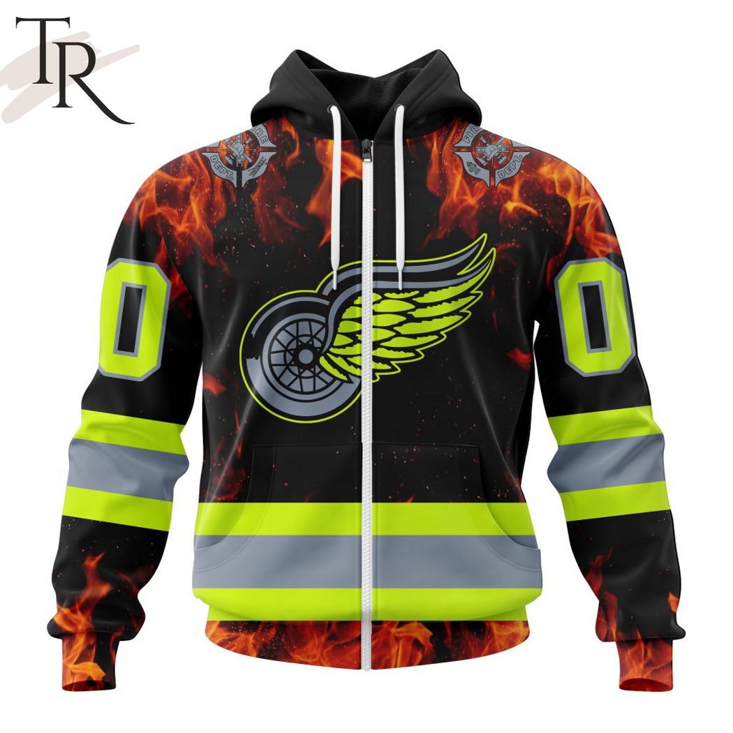 Personalized NHL Detroit Red Wings Special Design Honoring Firefighters Hoodie