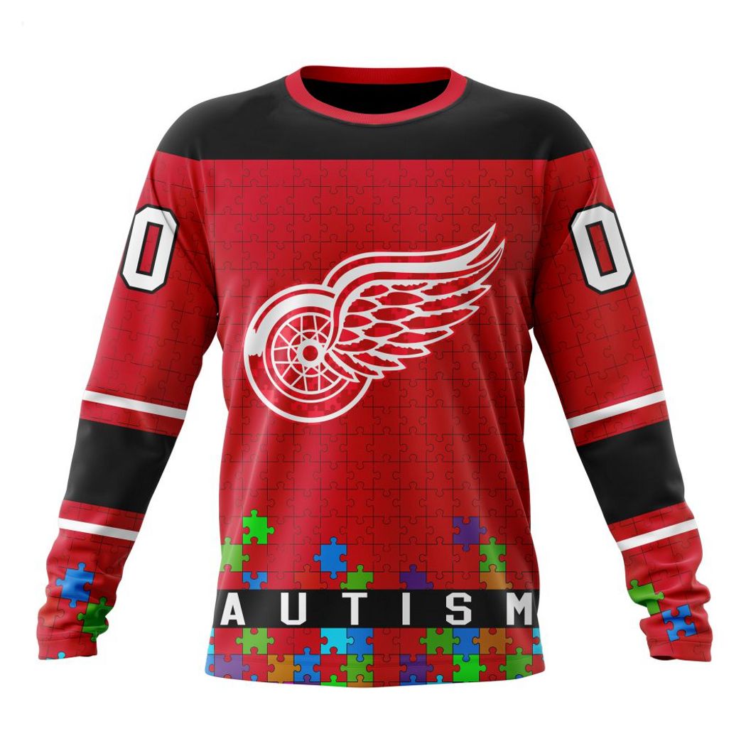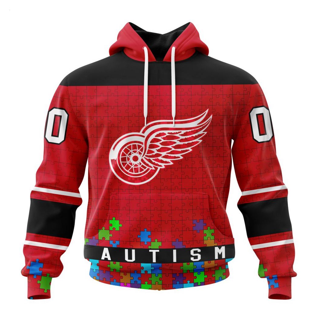 Personalized NHL Detroit Red Wings Specialized Unisex Kits Hockey Fights Against Autism Hoodie