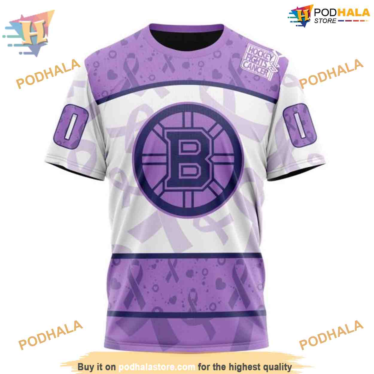 Personalized NHL Lavender Cancer Fight Boston Bruins Hoodie 3D, Unique Bruins Gear