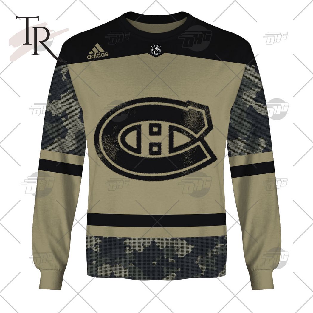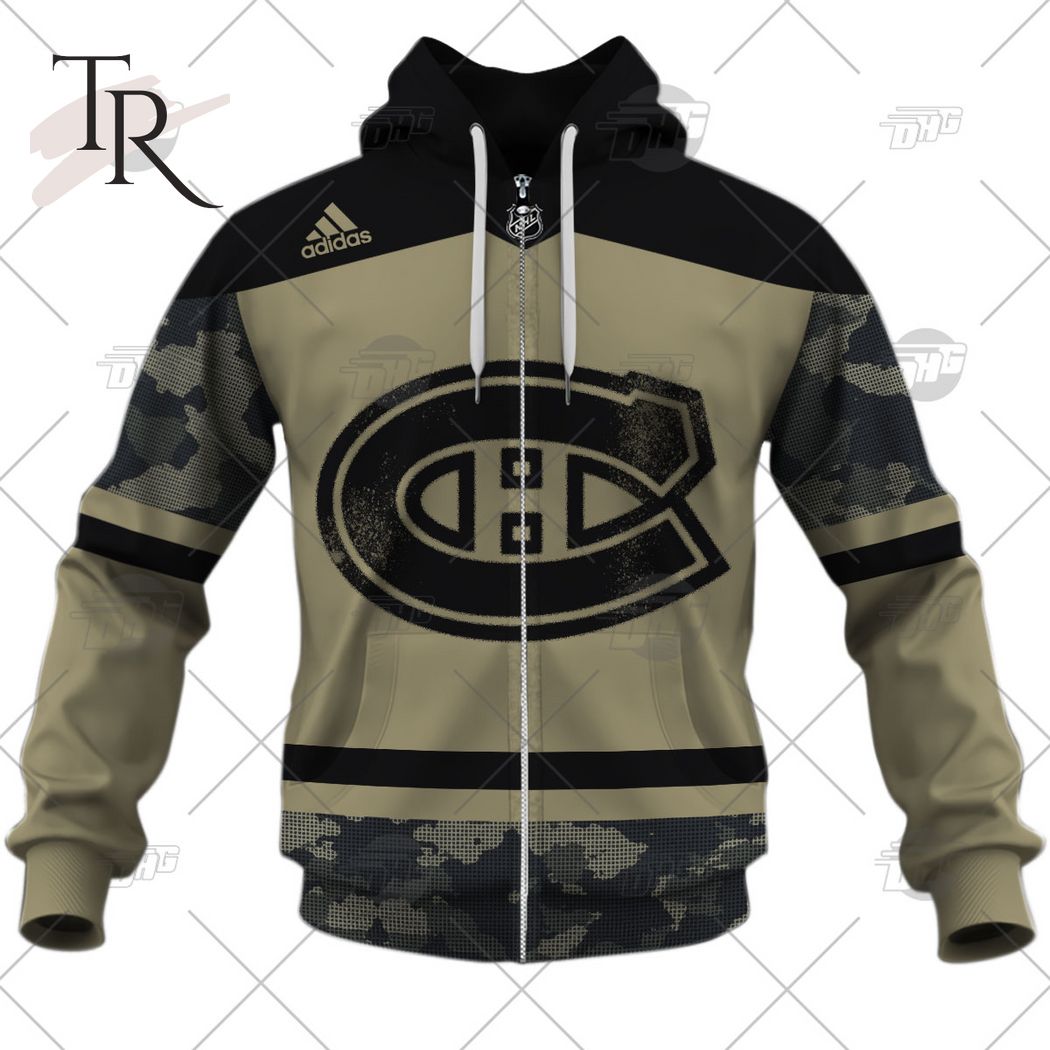 Personalized NHL Montreal Canadiens Camo Military Appreciation Team Authentic Custom Practice Jersey Hoodie 3D, Zipper Hoodie, Fleece Hoodie, Long Sleeve Shirt, T-Shirt
