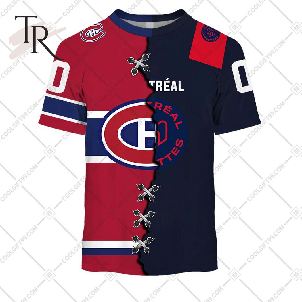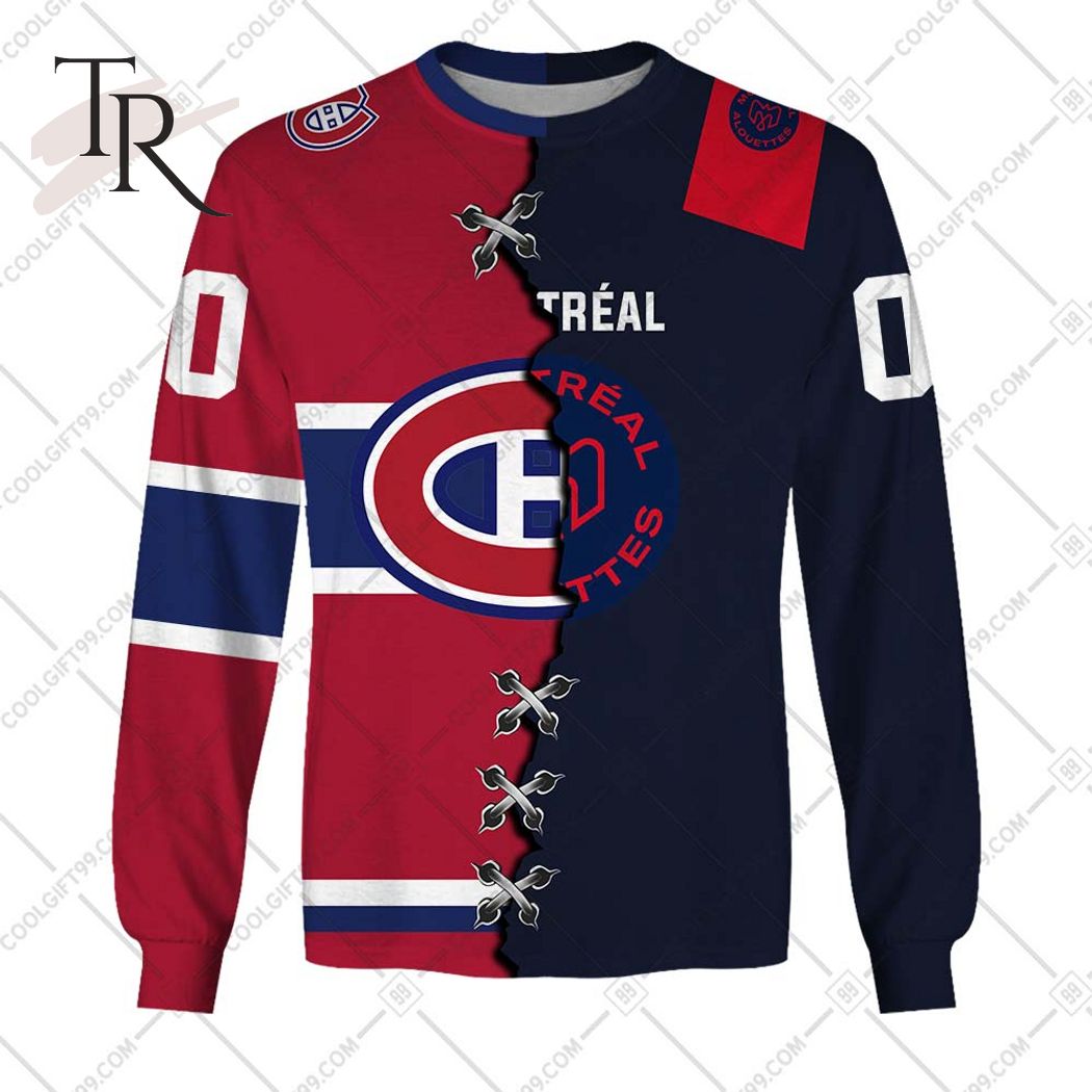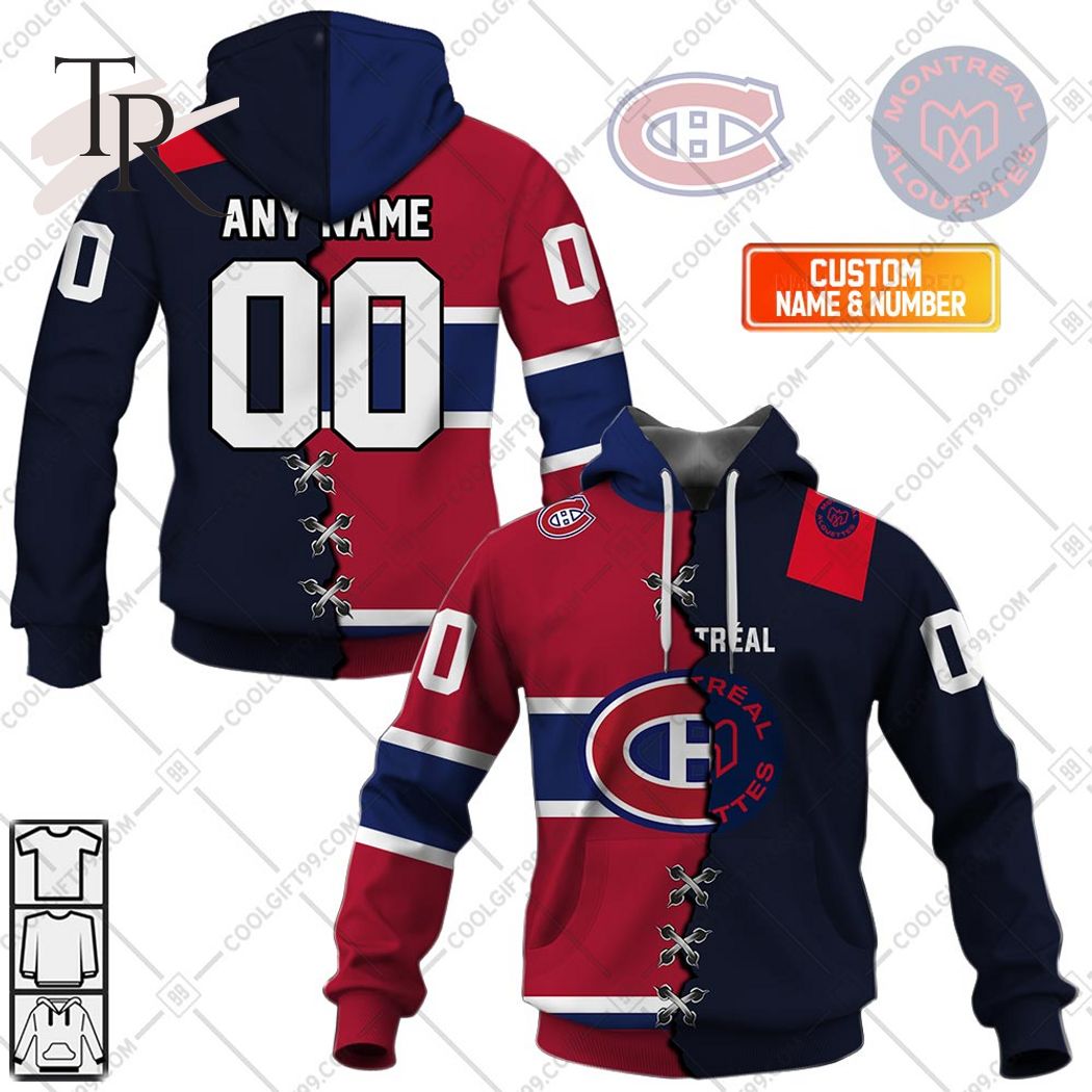 Personalized NHL Montreal Canadiens Mix CFL Montreal Alouettes Jersey Style Hoodie, Zipper Hoodie, Fleece Hoodie, Long Sleeve Shirt, T-Shirt