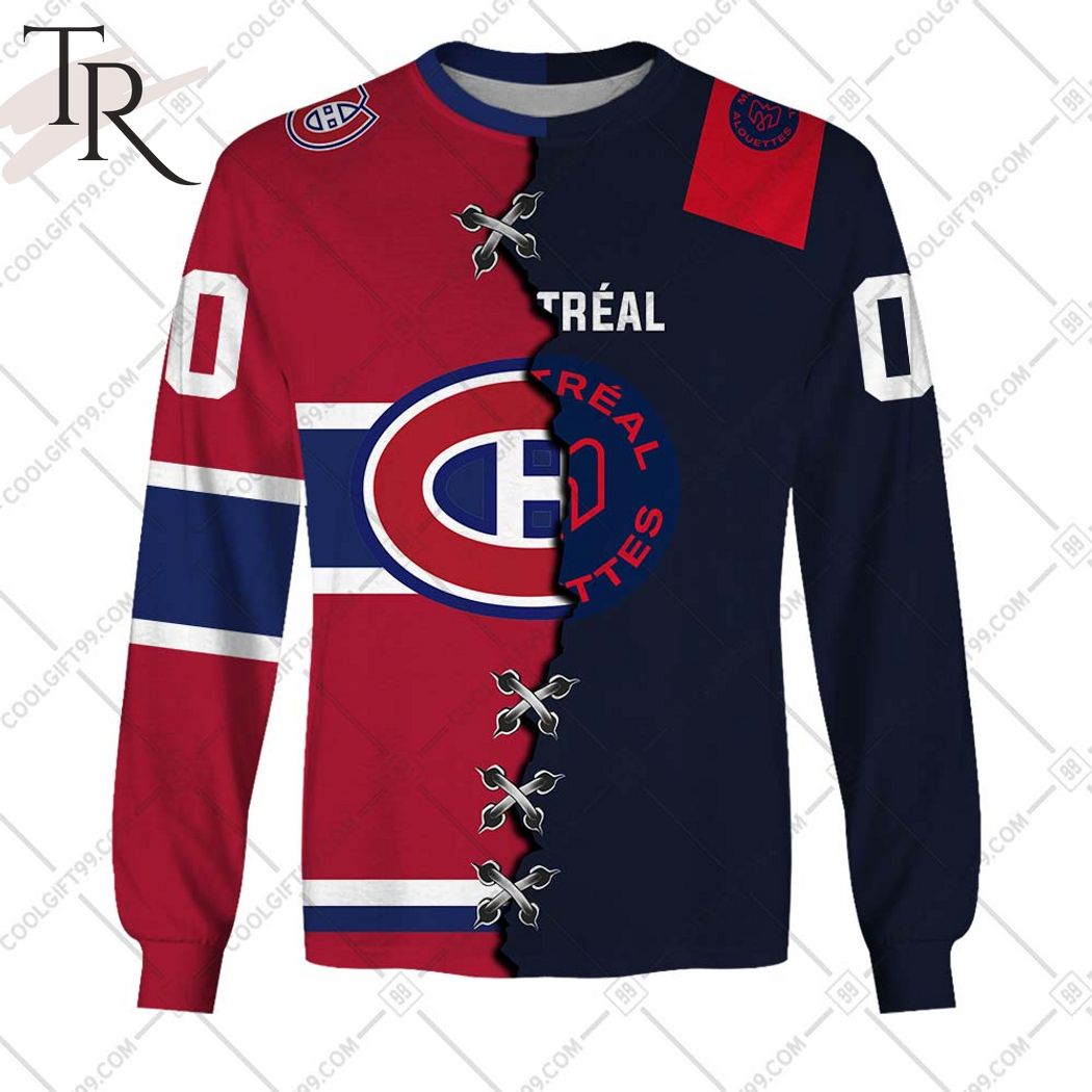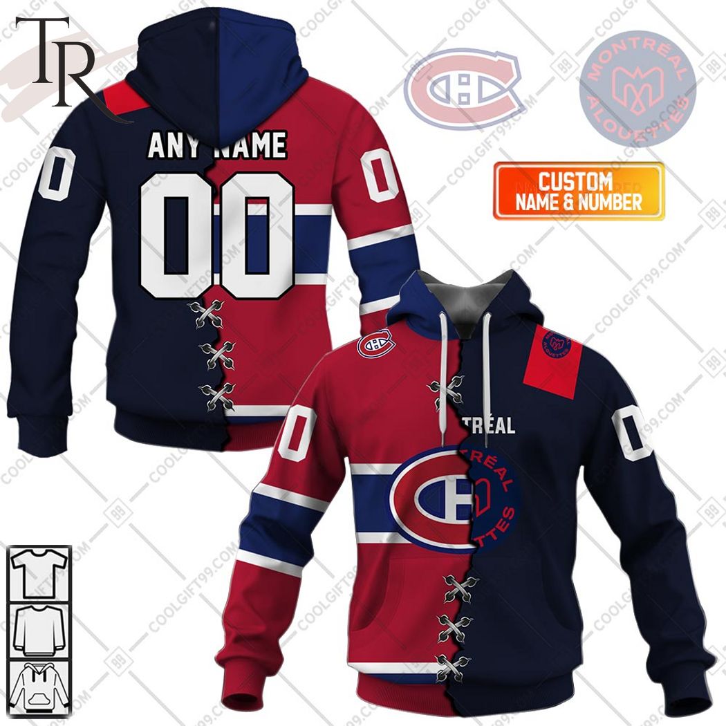 Personalized NHL Montreal Canadiens Mix CFL Montreal Alouettes Jersey Style Hoodie, Zipper Hoodie, Fleece Hoodie, Long Sleeve Shirt, T-Shirt