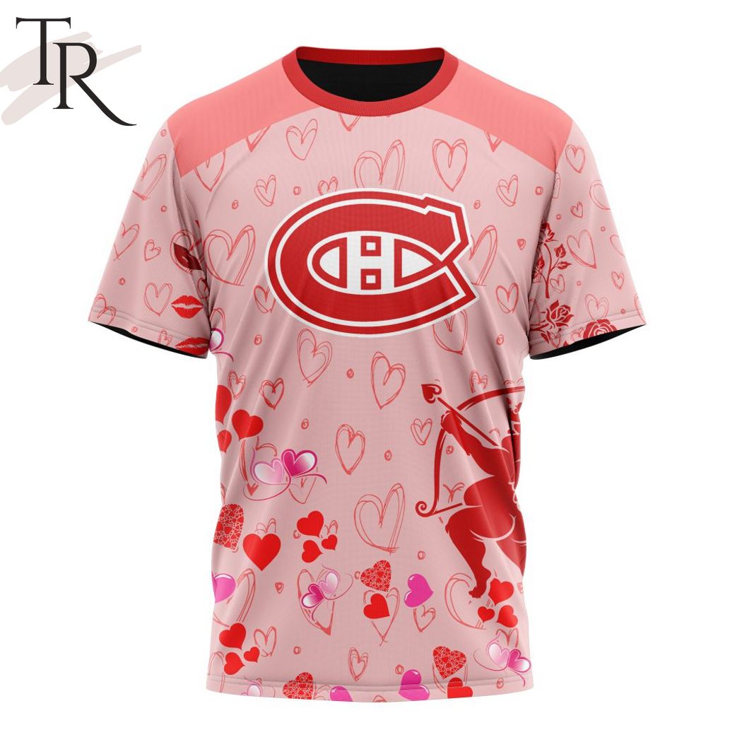 Personalized NHL Montreal Canadiens Special Design For Valentines Day Hoodie, Zipper Hoodie, Fleece Hoodie, Long Sleeve Shirt, T-Shirt