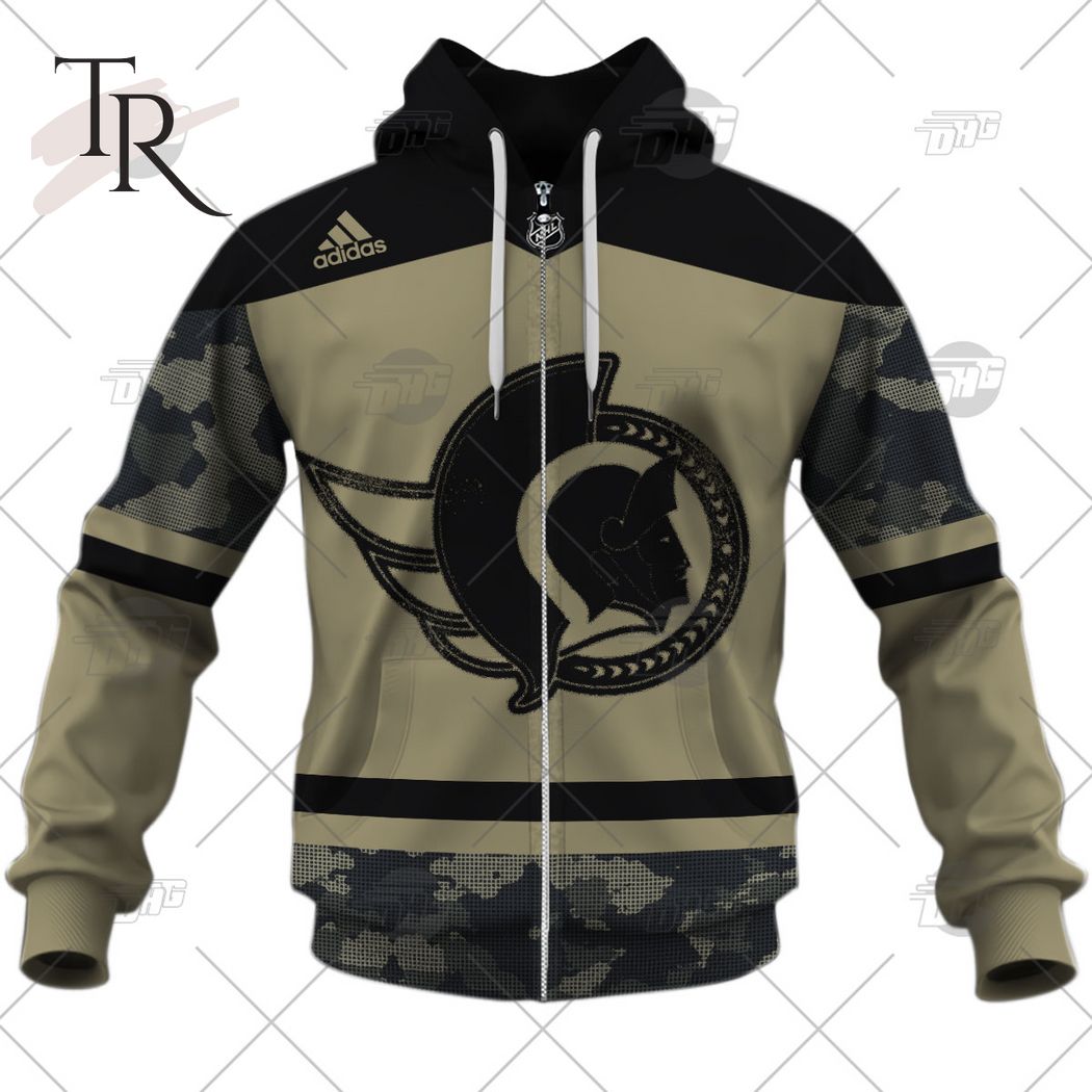 Personalized NHL Ottawa Senators Camo Military Appreciation Team Authentic Custom Practice Jersey Hoodie 3D, Zipper Hoodie, Fleece Hoodie, Long Sleeve Shirt, T-Shirt