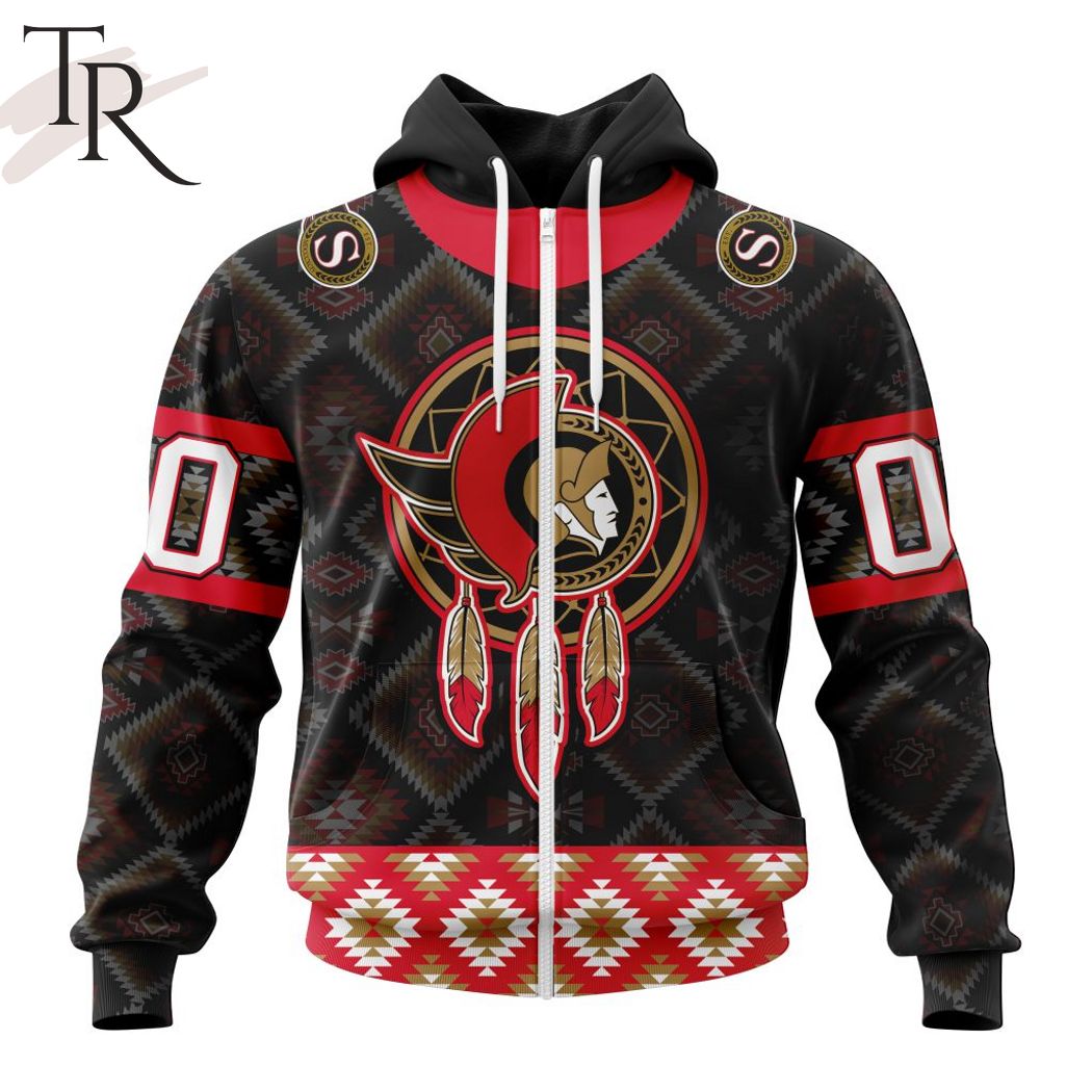 Personalized NHL Ottawa Senators Design With Native Pattern Full Printed Hoodie, Zipper Hoodie, Fleece Hoodie, Long Sleeve Shirt, T-Shirt