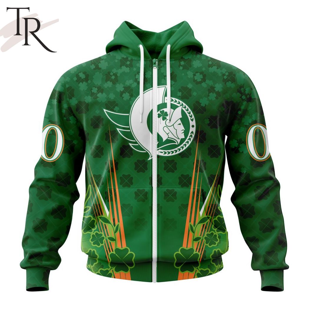 Personalized NHL Ottawa Senators Full Green Design For St. Patrick’s Day Hoodie, Zipper Hoodie, Fleece Hoodie, Long Sleeve Shirt, T-Shirt