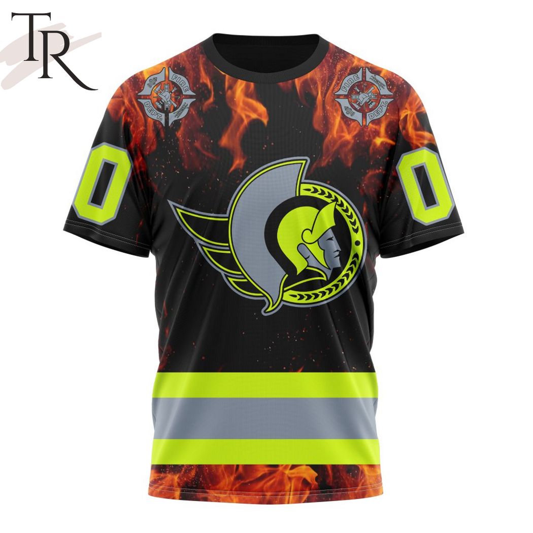 Personalized NHL Ottawa Senators Special Design Honoring Firefighters Hoodie, Zipper Hoodie, Fleece Hoodie, Long Sleeve Shirt, T-Shirt
