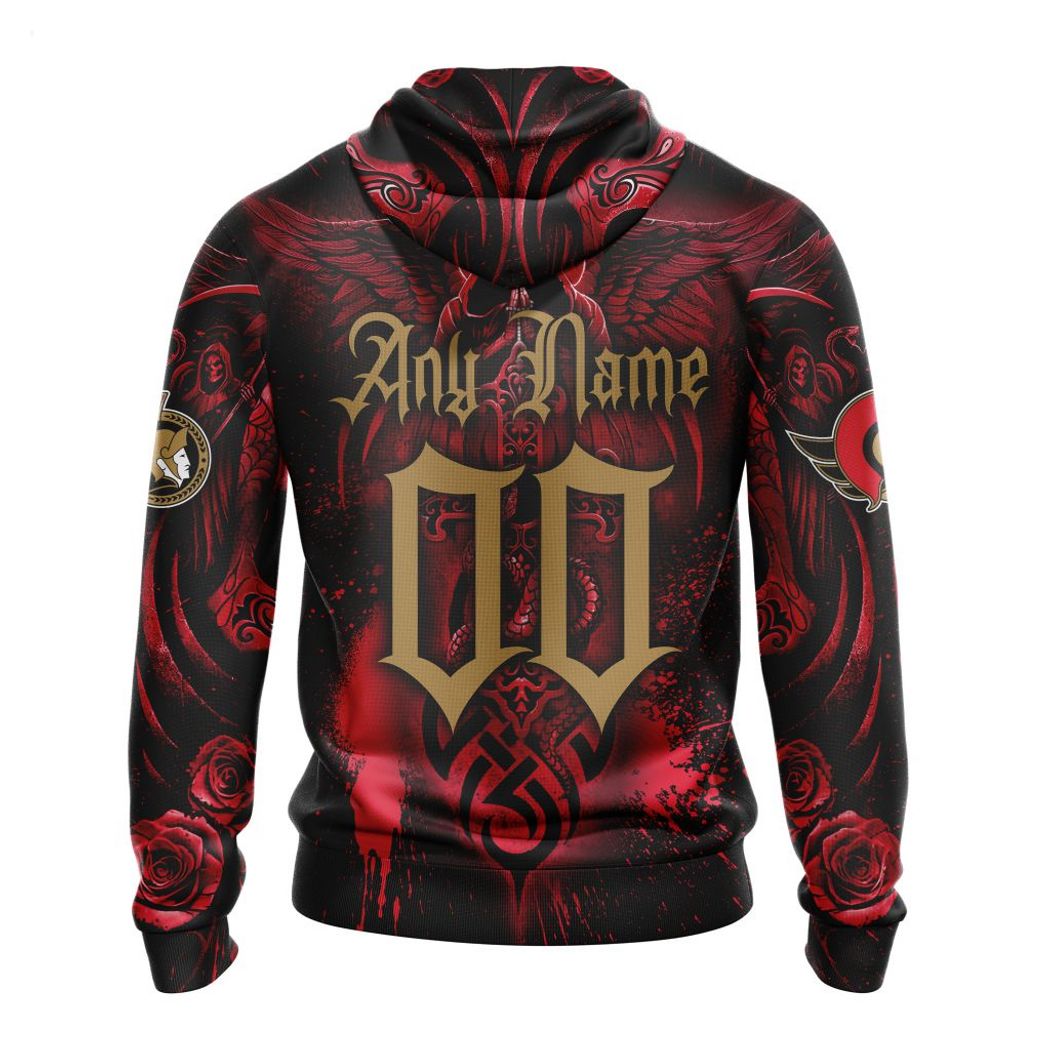 Show your love for the Ottawa Senators and make a statement with this Personalized NHL Ottawa Senators Special Design With Skull Art Hoodie. This stylish hoodie is made of high-quality fabric and features a unique skull graphic on the front. You can also personalize it with your own name to make it extra special! Show off your style and show your support for your favorite team at the same time with this eye-catching hoodie. Show off your team spirit with this personalized NHL Ottawa Senators special design Hoodie. Featuring an all-over skull art design, this stylish hoodie will have you looking stylish and unique. Crafted from a cotton/polyester blend, this piece of apparel is warm and comfortable enough for year-round wear. Showcase your unwavering loyalty to the Senators while staying on trend with this one-of-a-kind hoodie. Get yours today! Show your team spirit with this chic and stylish Personalized NHL Ottawa Senators Special Design With Skull Art Hoodie. Perfect for any hockey fan, this trendy hoodie features an eye-catching skull design adorned with bold colors that bring the iconic logo to life. With its comfy cotton construction, you can relax in the stands or keep warm at home while showing off your loyalty to the Sens. Plus, it?s easily personalized with a name of your choice for a unique touch that no one else has. Support your favorite team and get noticed in this stylish hoodie?you won’t be disappointed!