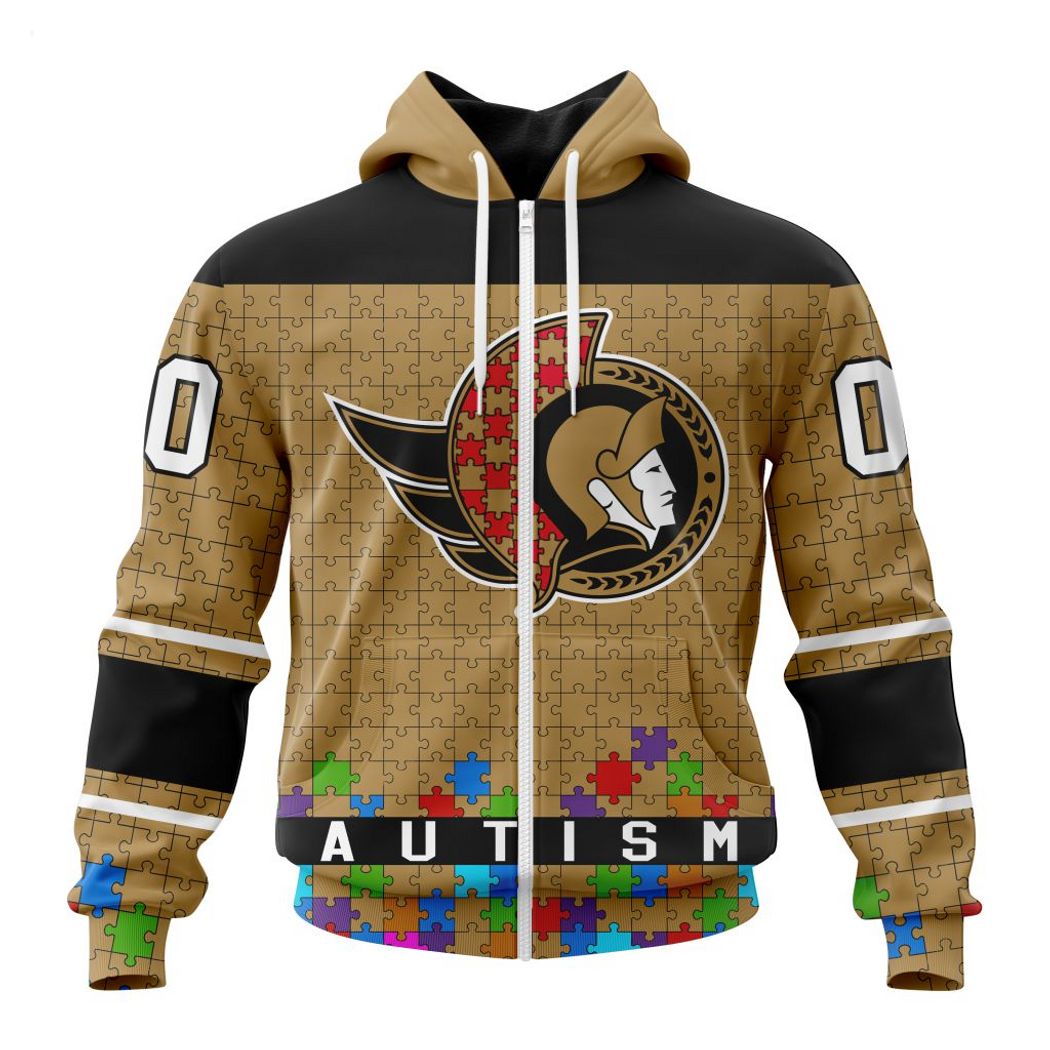 Personalized NHL Ottawa Senators Specialized Unisex Kits Hockey Fights Against Autism Hoodie, Zipper Hoodie, Fleece Hoodie, Sweater, T-Shirt
