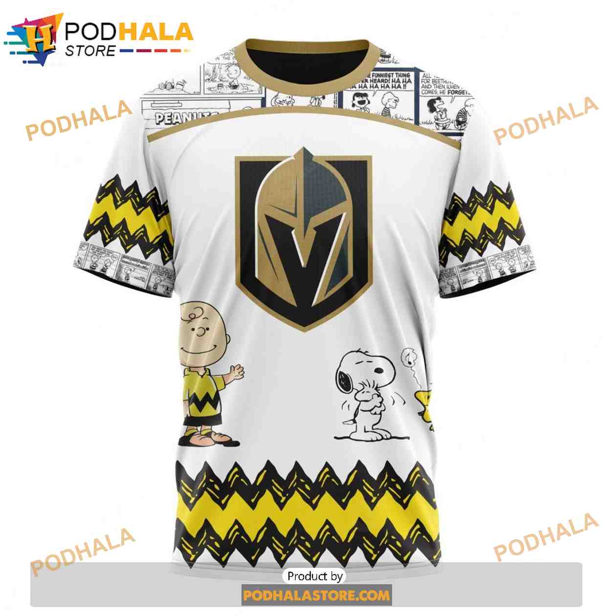 Personalized NHL Vegas Golden Knights Peanuts Snoopy Design Shirt 3D Hoodie