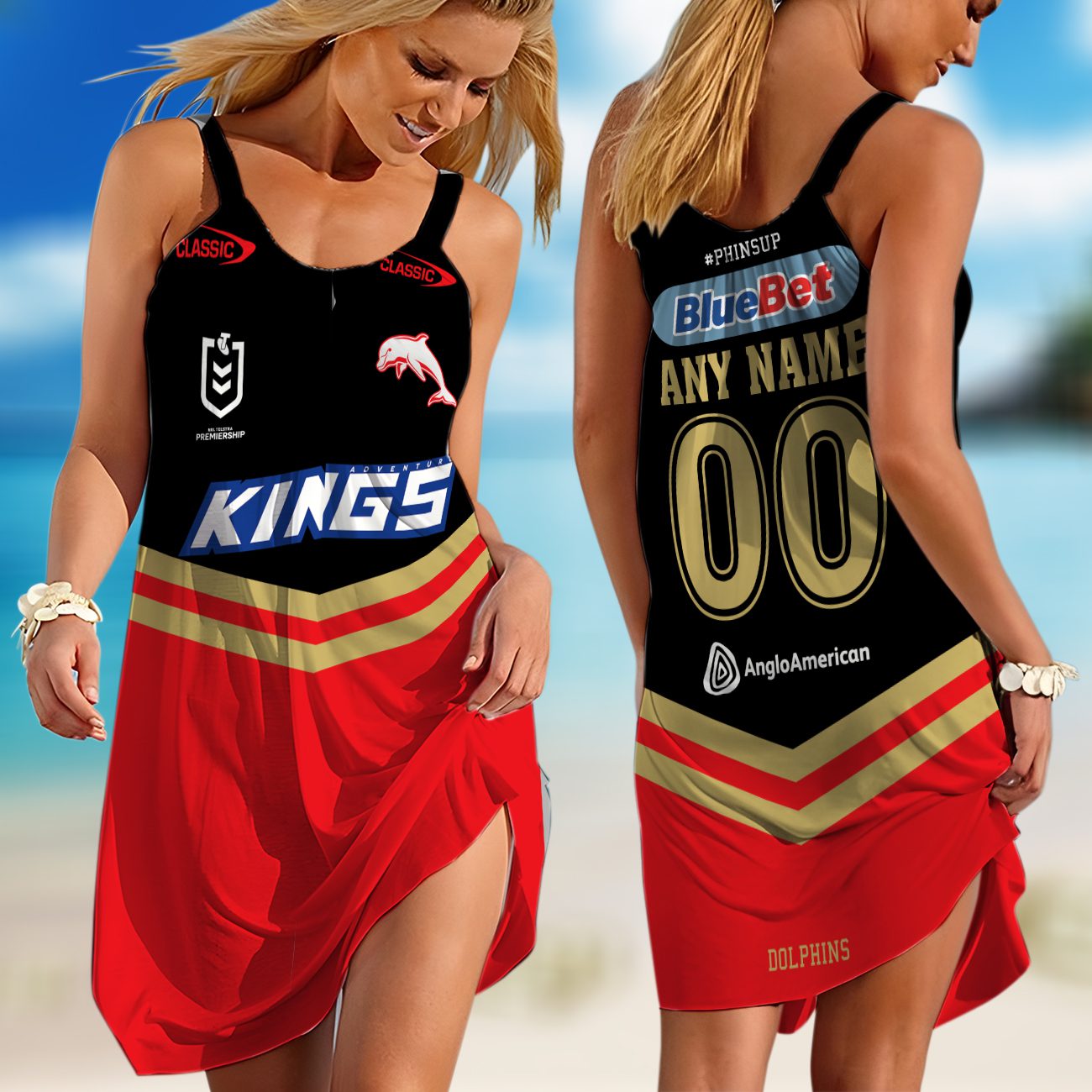 Personalized NRL Dolphins 2024 Alternate Kits Sleeveless Summer Beach Sundress for Women