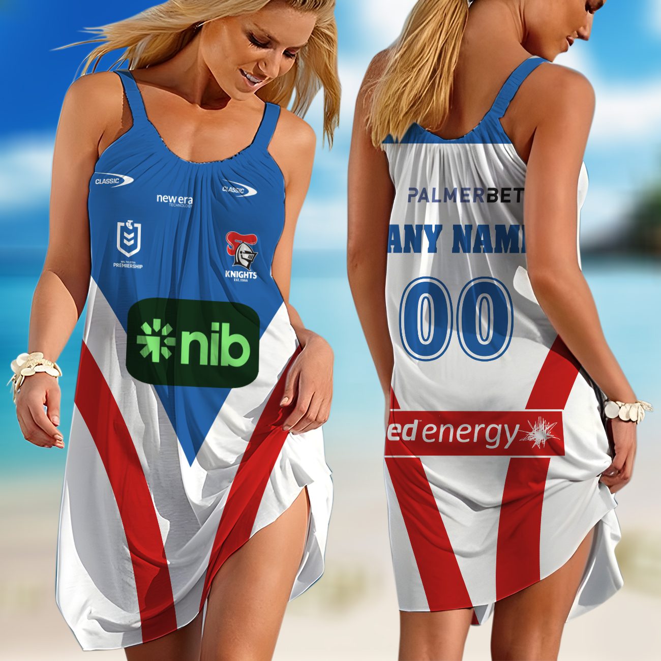 Personalized NRL Newcastle Knights 2024 Away Sleeveless Summer Beach Sundress for Women