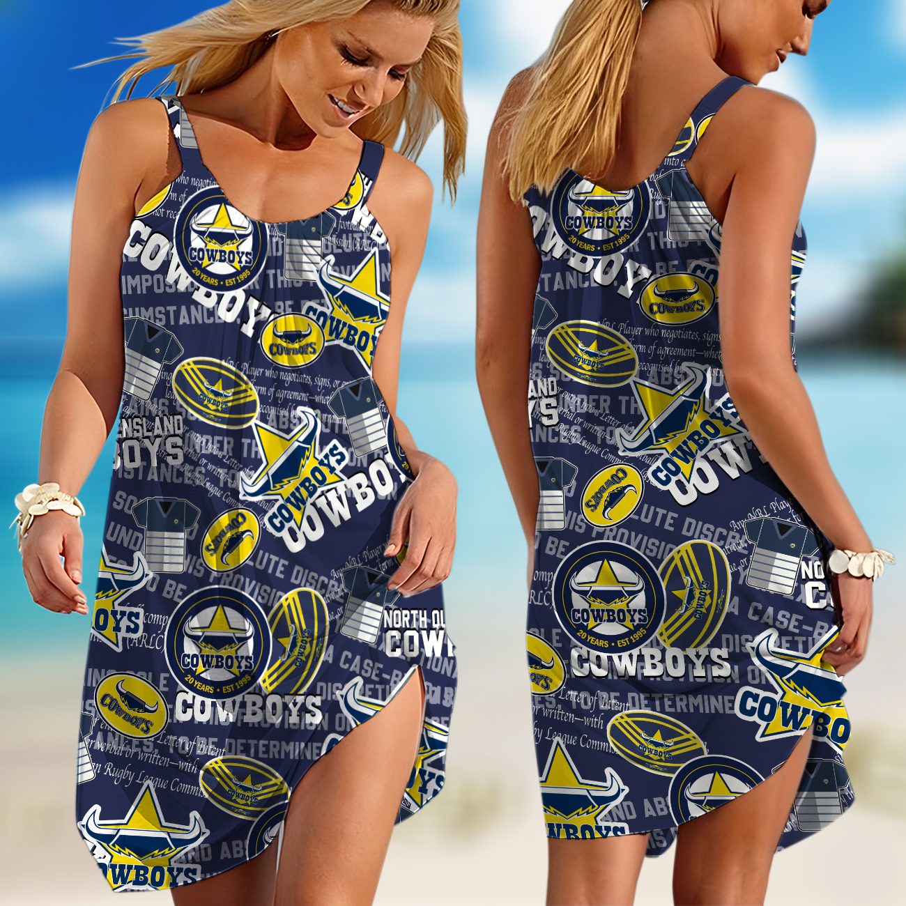Personalized NRL North Queensland Cowboys Classic Sleeveless Summer Beach Sundress for Women