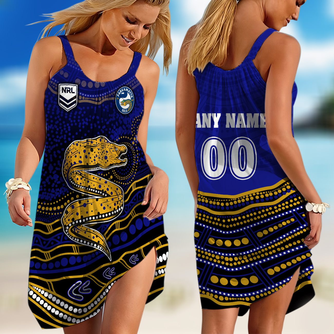 Personalized NRL Parramatta Eels Specialized Indigenous Concept With Team Mascot Sleeveless Summer Beach Sundress for Women