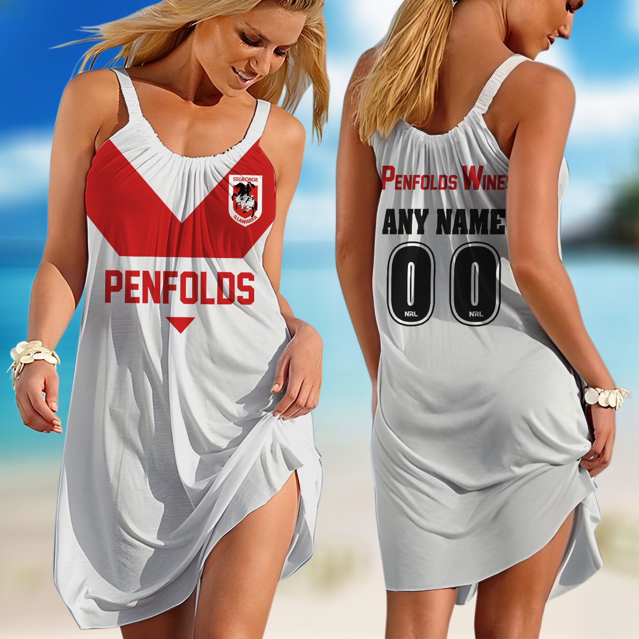 Personalized NRL St. George Illawarra Dragons Retro 1979 Sleeveless Summer Beach Sundress for Women