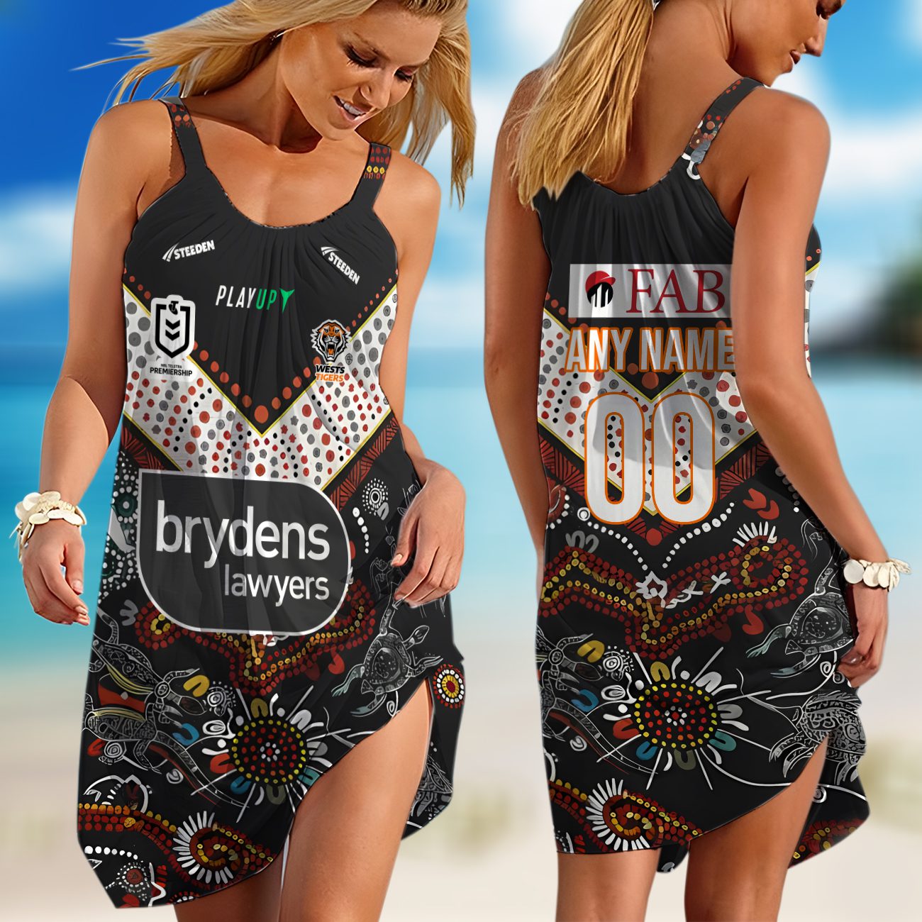 Personalized NRL Wests Tigers Special Indigenous Design 2023 Sleeveless Summer Beach Sundress for Women