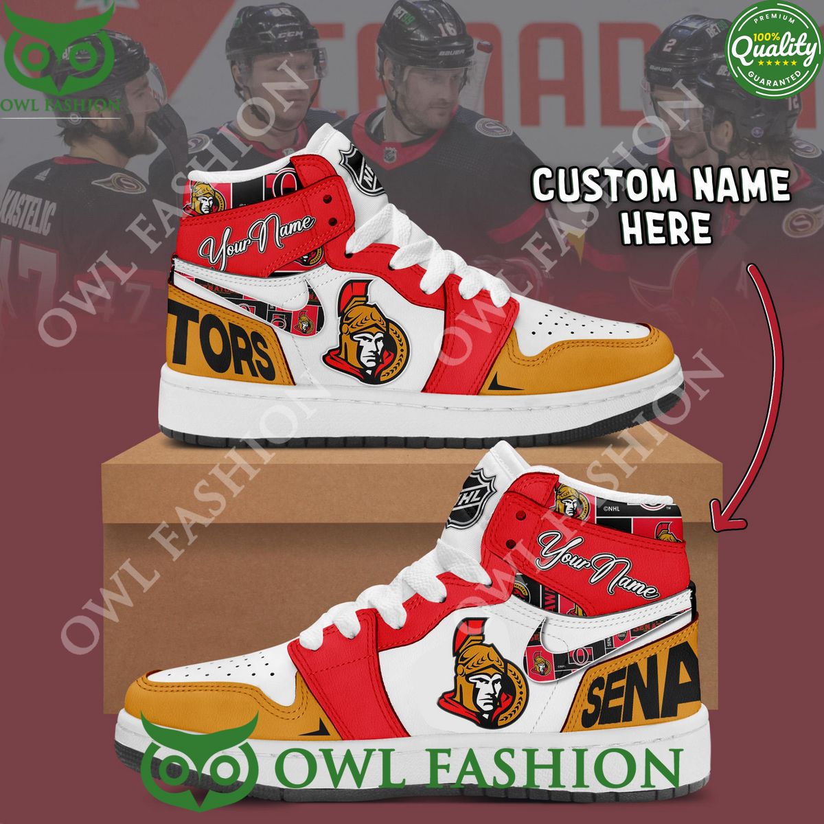 Embrace the spirit of hockey and showcase your loyalty to the Ottawa Senators with the “Personalized Ottawa Senators NHL Ice Hockey Air Jordan High Top.” It’s a stylish and meaningful way to celebrate your team and stand out as a true fan in any crowd.