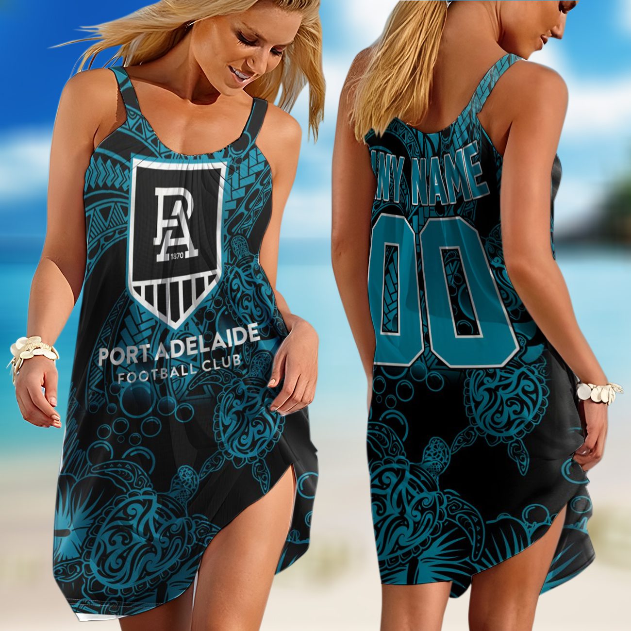 Personalized Port Adelaide Football Club AFL Special Polynesian Sleeveless Summer Beach Sundress for Women