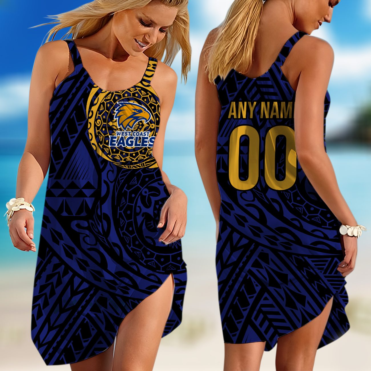 Personalized West Coast Eagles AFL Special Polynesian Design Sleeveless Summer Beach Sundress for Women