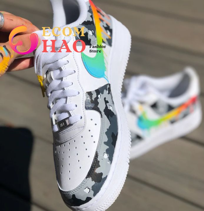 Polaroid Custom Air Force 1 The Polaroid Custom Air Force 1 is an incredible pair of shoes that offers stylish design and comfort. These shoes feature a unique design with a high top profile, a synthetic upper, and stunning Polaroid film graphics all over. The shoes also have a soft inner lining and padded collar...