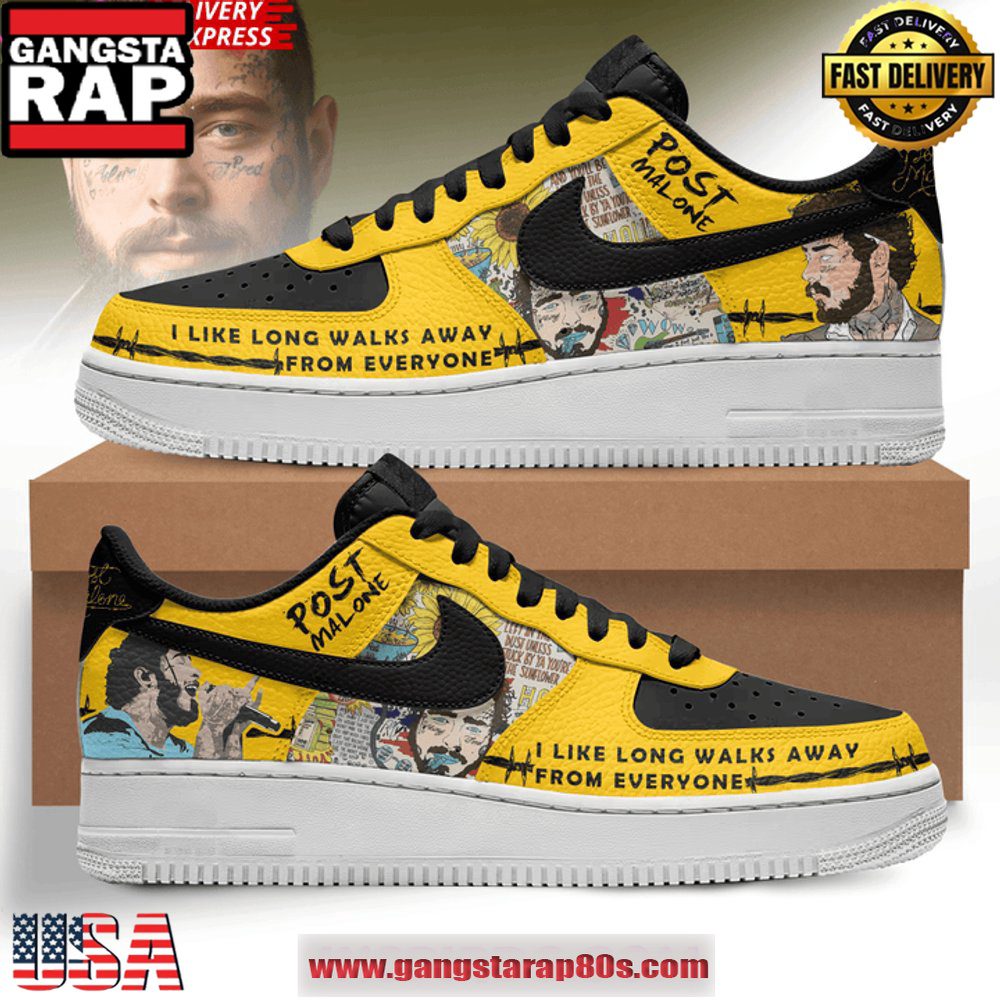 Post Malone ?I Like Long Walks Away From Everyone? New Edition Air Force 1 Sneakers Shoes