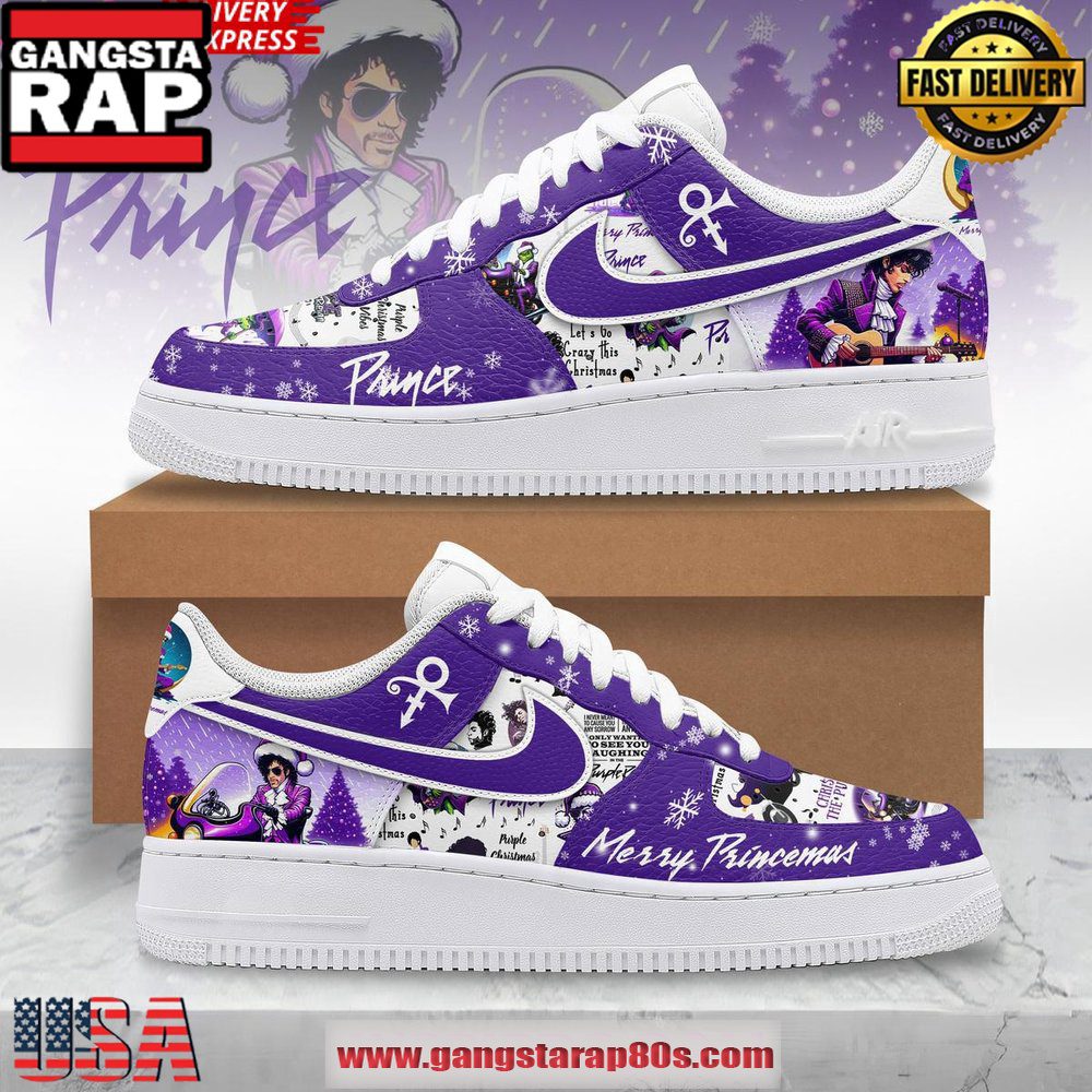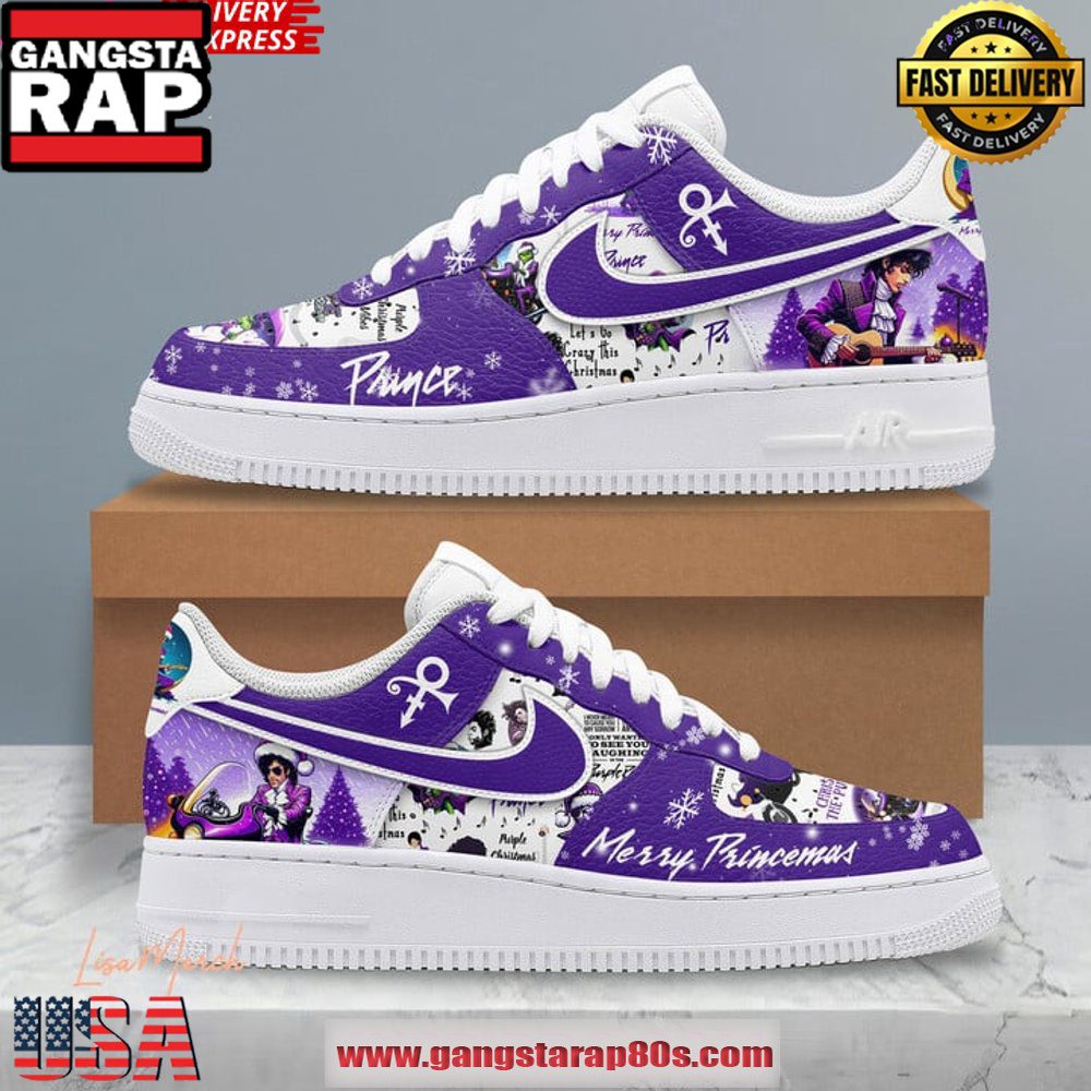 This holiday season, step into greatness with the Prince Merry Princemas Limited Edition Air Force 1 Running Sneakers, where timeless design meets festive cheer, creating an unforgettable footwear experience.