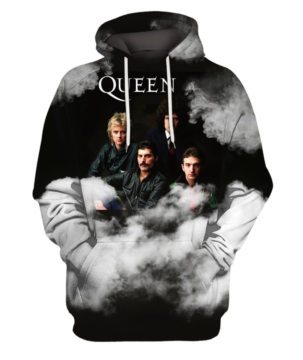Queen Rock Band Members Pullover Hoodie V1 Product Features Along with its Queen Rock Band graphics, this cozy pullover hoodie features super-soft midweight material. Material: 95% polyester + 5% spandex. The fabric is durable and resistant to wrinkles, shrinking and mildew. Hood with drawstrings. Long sleeve. Front pouch pocket. Midweight hoodie suitable for moderate temperatures....