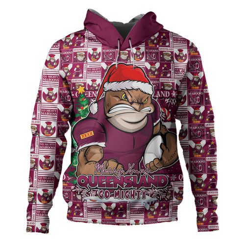 Queensland Maroons Hoodie Merry Ugly Christmas Comic Style