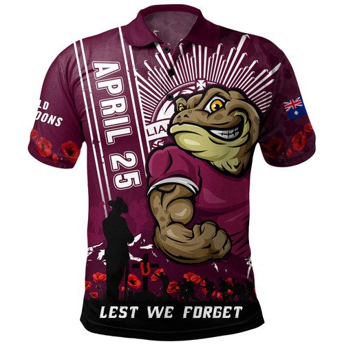 Queensland Maroons Polo Shirt Anzac Day Lest We Forget Strong Fighting Spirit