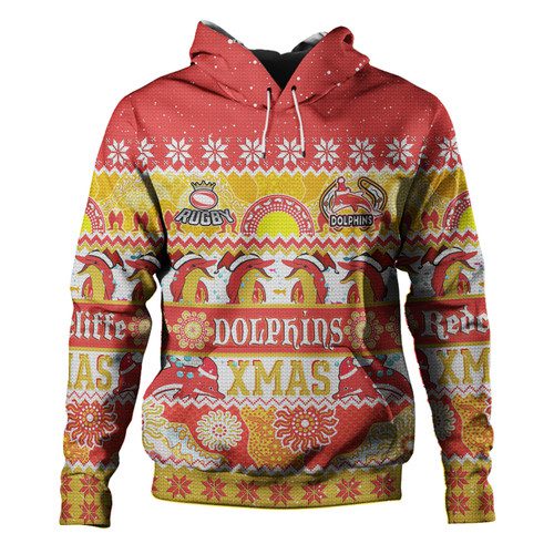 Redcliffe Dolphins Christmas Aboriginal Custom Hoodie – Indigenous Knitted Ugly Xmas Style Hoodie