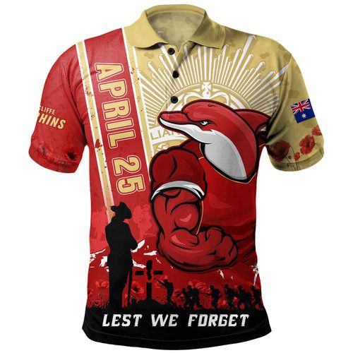 Redcliffe Dolphins Polo Shirt Anzac Day Lest We Forget Strong Fighting Spirit