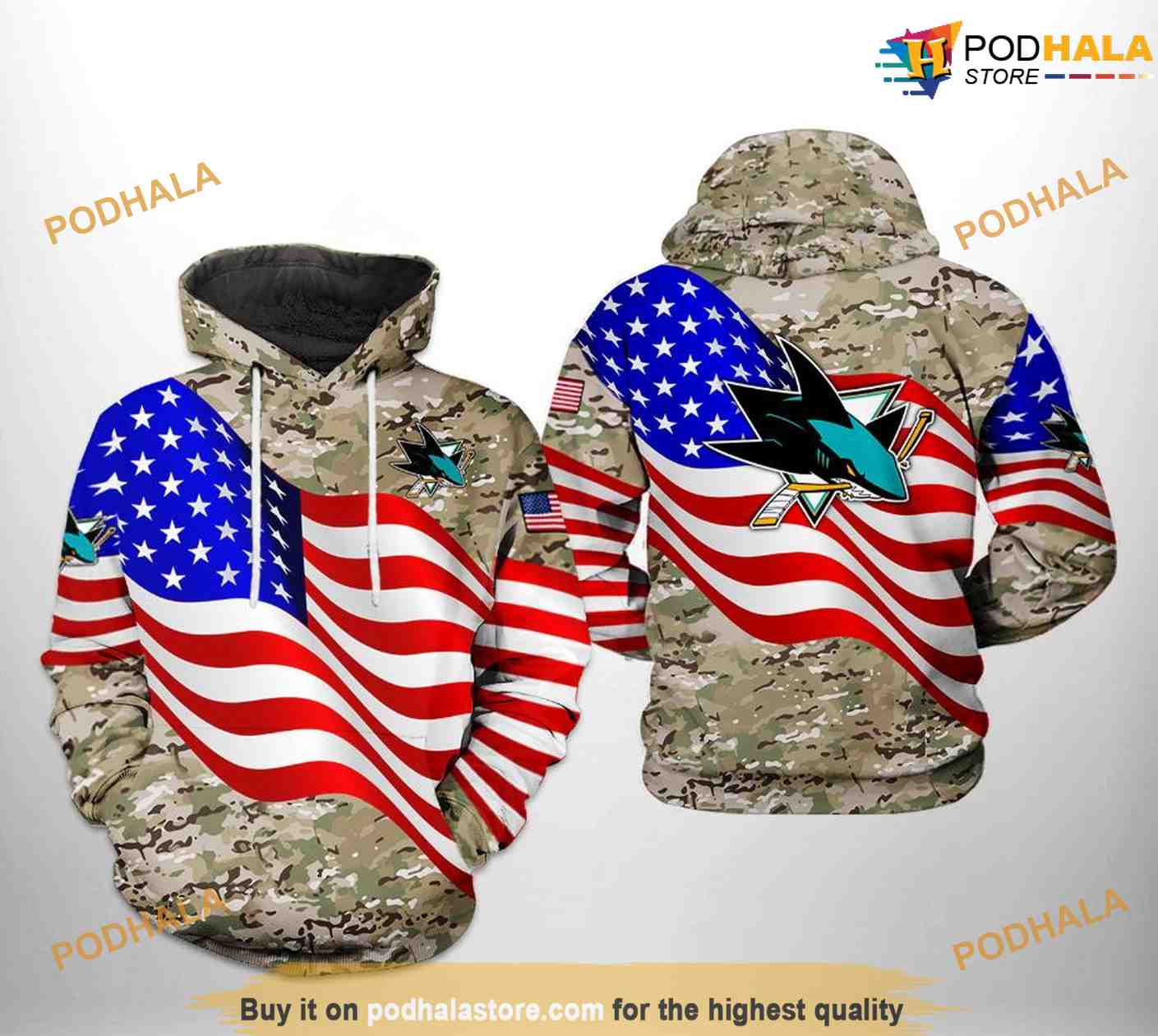 San Jose Sharks NHL US FLag Camo Veteran NHL Hoodie 3D