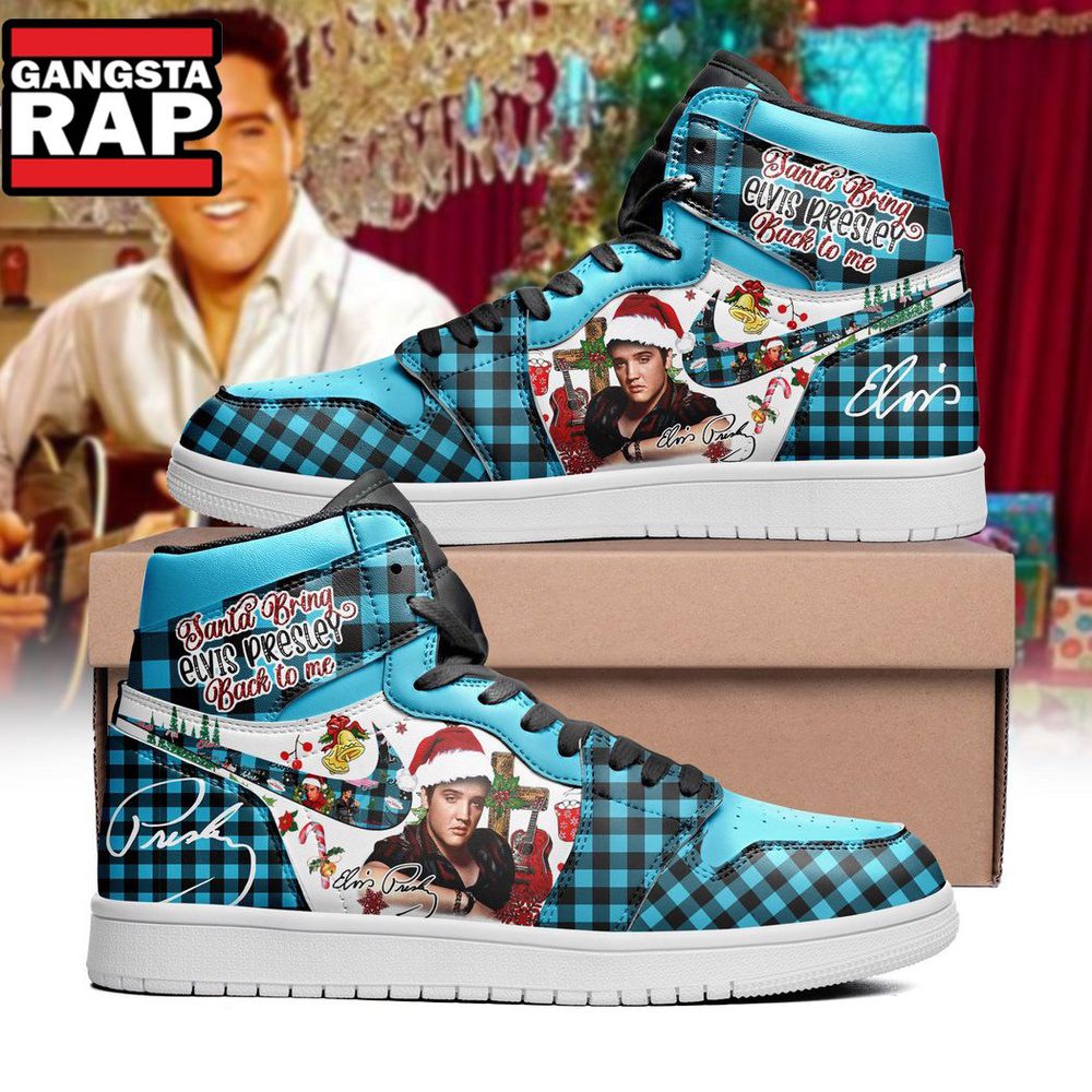 Fashion trends often circle back, and retro sneakers are back in vogue. The Santa Bring Elvis Presley Back To Me Air Jordan 1 Hightop Shoes not only reflect this trend but also combine it with an icon known across generations. These shoes are perfect for those who admire the influence of rock legends on modern music and street style. It?s not just about wearing a pair of sneakers; it’s about wearing a piece of history that celebrates cultural icons and their enduring impact.