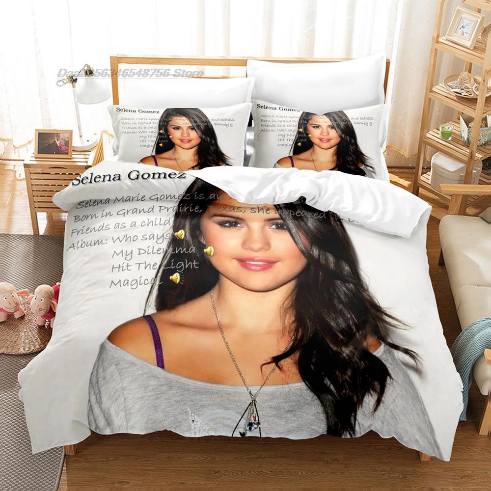 Product Features This Selena Gomez quilt cover set is custom-made-to-order and handcrafted to the highest quality standards. Material: 100% Polyester. Comes with one doona cover and two pillowcases. Pillow inserts and duvet inserts are not included. SOFT & COMFORTABLE – Made using soft material with siliconized fiber filling that provides a comfy and cozy feel...